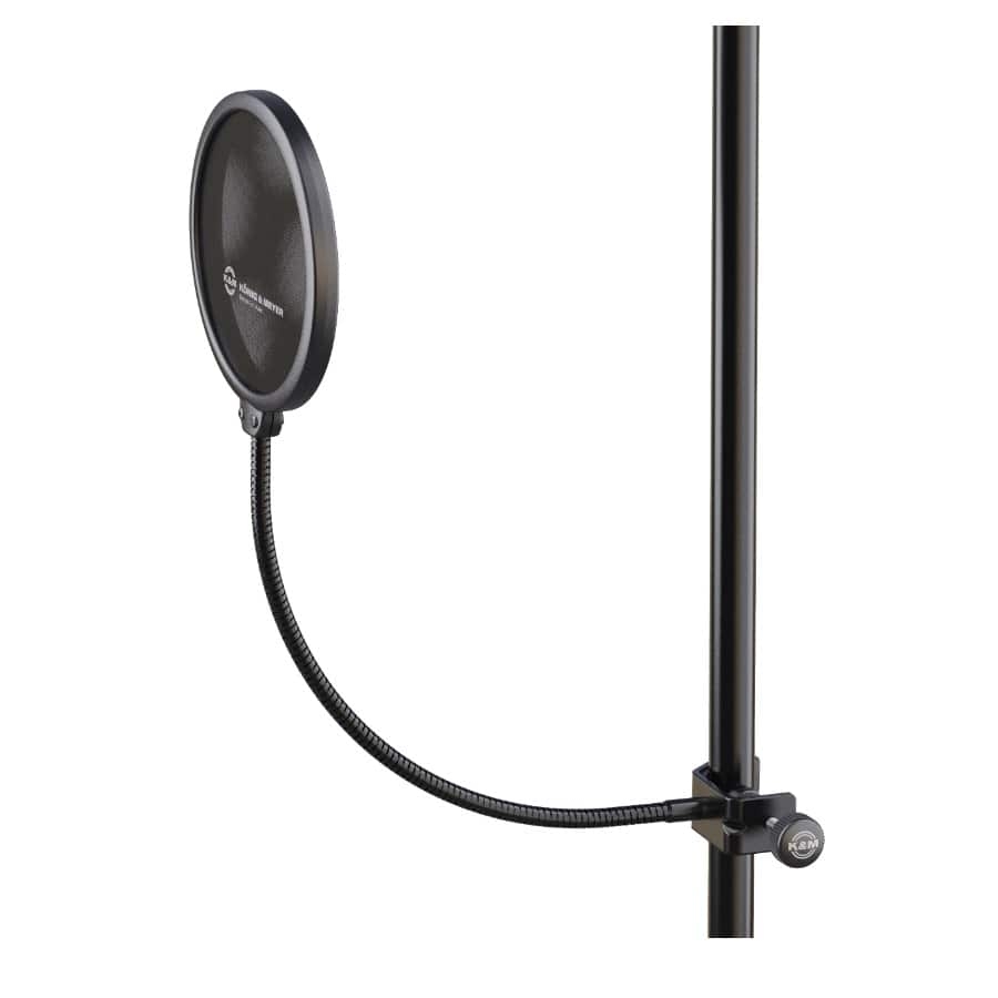 The 23956 is a great pop filter from Konig & Meyer. The pop filter is suitable for stands that aren’t wider than 30 millimetres. You can attach the filter to the microphone with the threaded clasp. The filter itself is made of double nylon. A pop filter is a great purchase as it prevents the hard P- and S-sounds which will make your recording sound more professional and more pleasant.