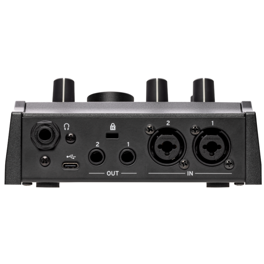 The clearly laid-out controls on the front panel provide direct access to essential functions. Thanks to zero-latency direct monitoring, you always hear yourself in real time, ensuring a comfortable and efficient recording or live experience.