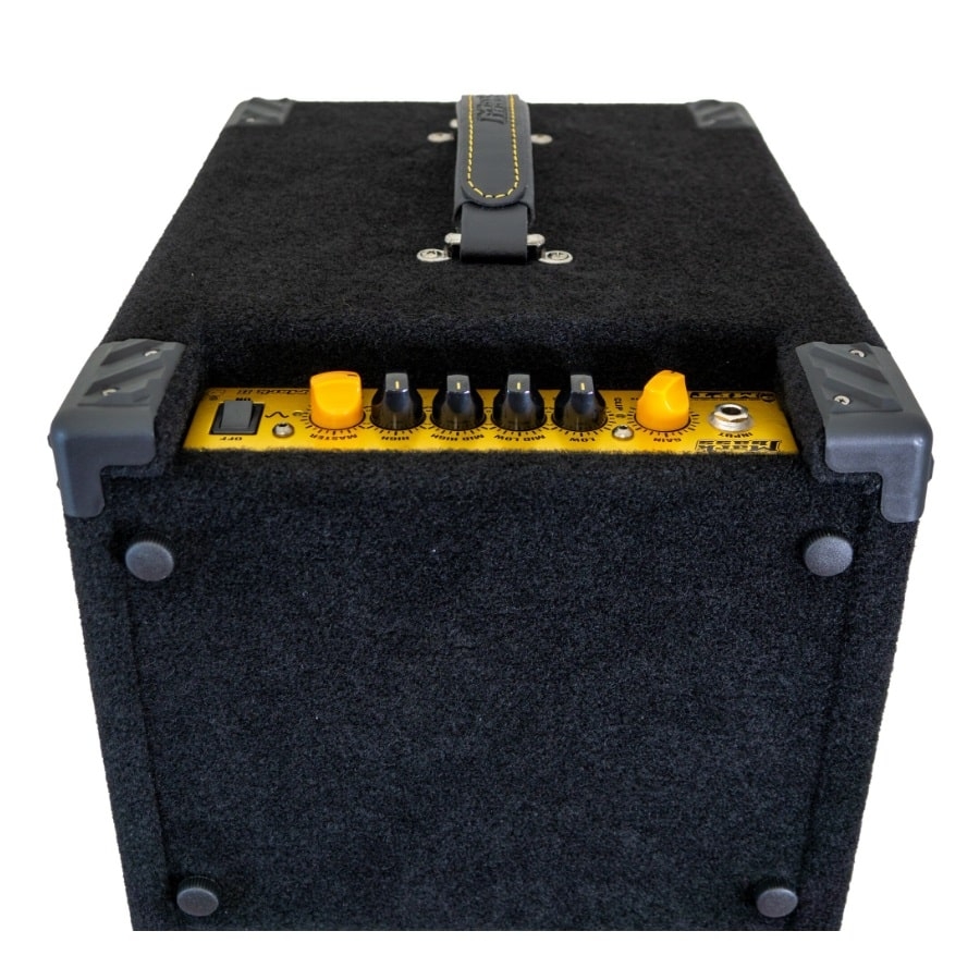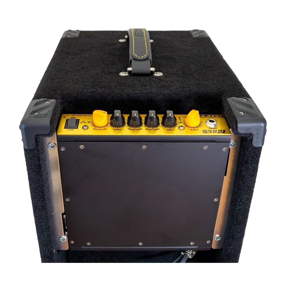 The Minimark 802 N 300 is a handy combo amp. It’s not only the ideal amp to transport, due to its small size, but you can also detach the NANO MARK II head and use it separately. Moreover, you can use the cabinet with another amp if you want. However, you can screw the head back in and use it as a handy combo amp without having to carry around two separate parts. The entire system has an awesome power-to-weight ratio, weighing only 12,7 kilos and with a power of 150 watts. Furthermore, the NANO MARK II head has an amazing range of tone shaping options and it has a 4-band equalizer so you can produce high-quality sounds. You can also connect a separate footswitch so you can change the EQ completely with just a press of the button. Additionally, the system has two eight-inch speakers so you have access to a wide frequency response.