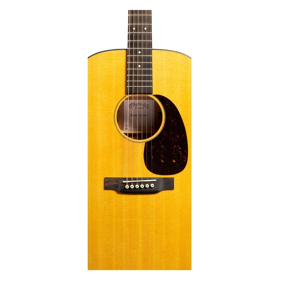 The D-10E Retro is one of the Dreadnought guitars from the Road Series. Dreadnoughts are very popular because they’re very versatile and produce a full and rich sound. They are the ideal rhythm guitars, although fingerpicking still sounds amazing on a Dreadnought. Furthermore, Martin is the place to go for a Dreadnought, considering they invented the guitar and are still one of the best when it comes to the production of these guitars. The D-10E Retro has a spruce top. Spruce has a beautiful resonance and produces a warm sound. The back and sides are made of sapele. Sapele has a beautiful dark colour and produces a bright and powerful sound. The guitar has a ‘select hardwood’ neck. This means the neck is either made of cedar or mahogany, depending on which of the two Martin can obtain without having to participate in deforestation. Both tonewoods are great choices for a neck and the difference between the two is minimal. The guitar also has an ebony fretboard, which will provide a smooth playing surface.