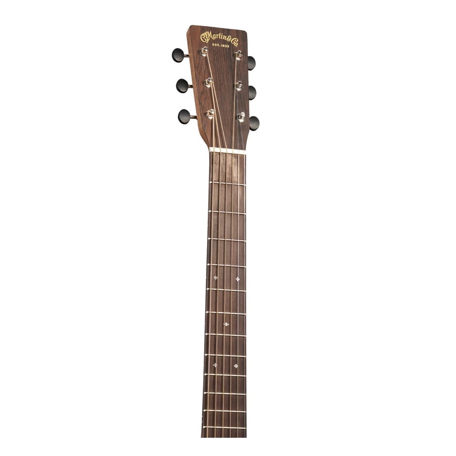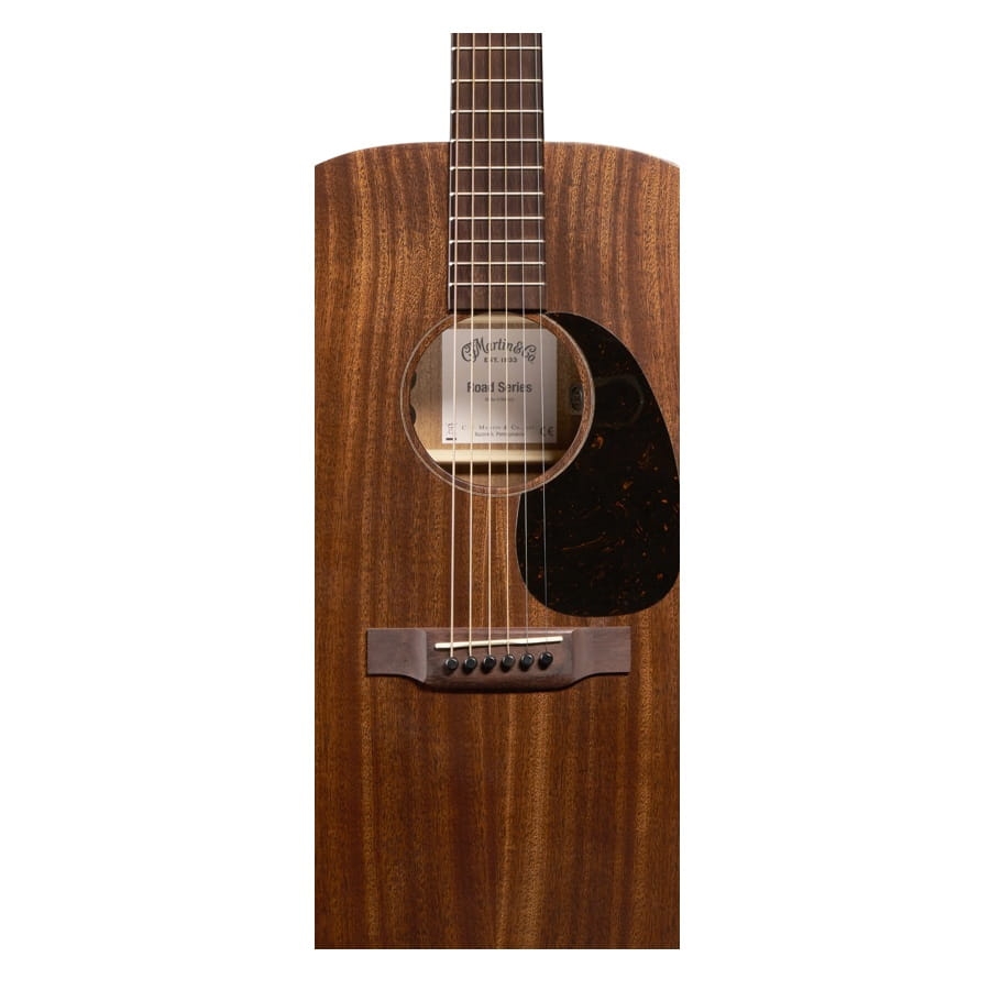 The D-10E Retro Sapele is one of the Dreadnought guitars from the Road Series. Dreadnoughts are very popular because they’re very versatile and produce a full and rich sound. They are the ideal rhythm guitars, although fingerpicking still sounds amazing on a Dreadnought. Furthermore, Martin is the place to go for a Dreadnought, considering they invented the guitar and are still one of the best when it comes to the production of these guitars. The top, back, and sides are made of sapele. Sapele has a beautiful dark colour and produces a bright and powerful sound. The guitar has a ‘select hardwood’ neck. This means the neck is either made of cedar or mahogany, depending on which of the two Martin can obtain without having to participate in deforestation. Both tonewoods are great choices for a neck and the difference between the two is minimal.