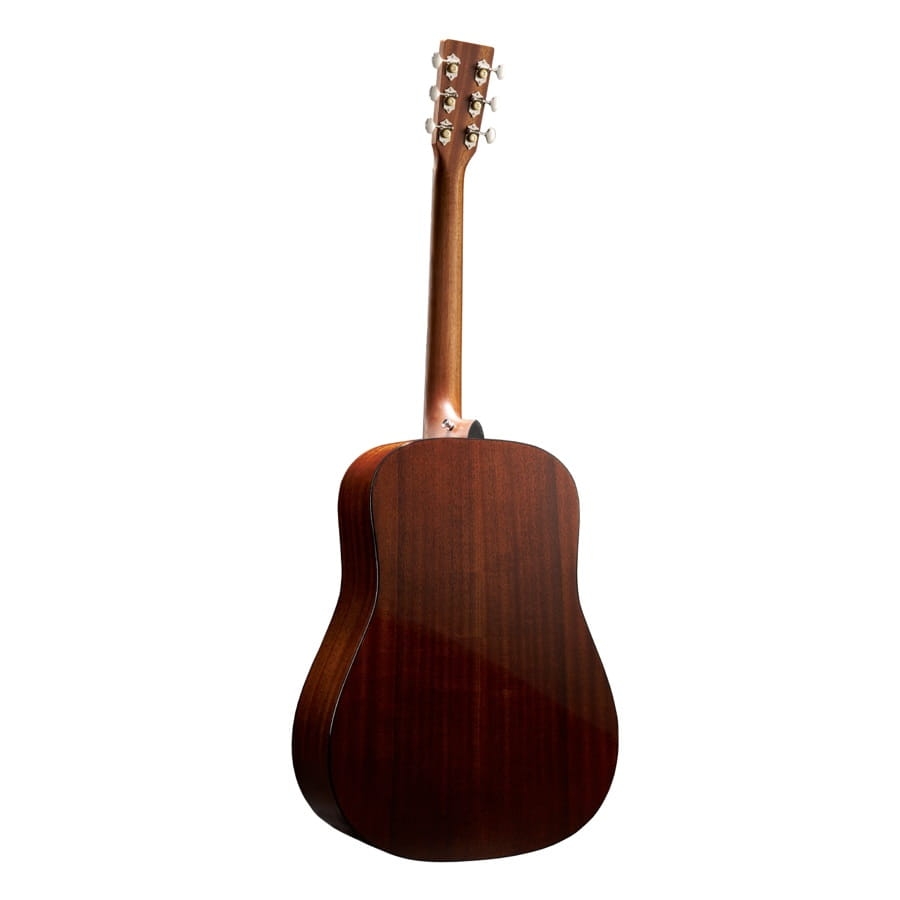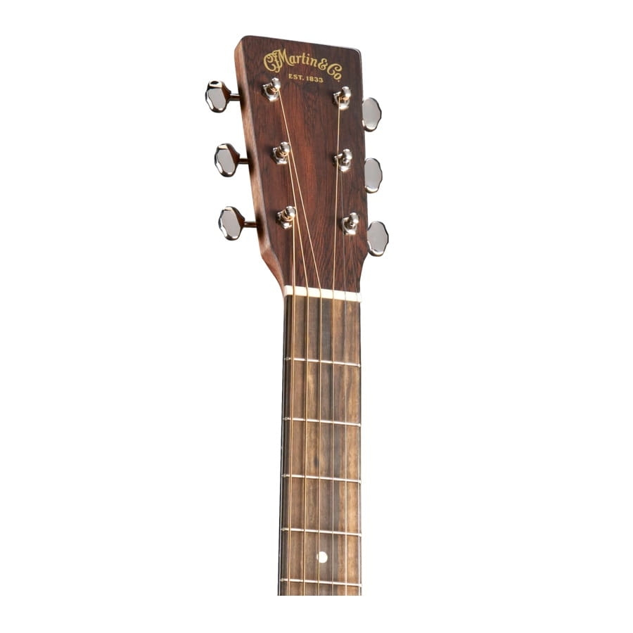 The D-12E Retro is one of the Dreadnought guitars from the Road Series. Dreadnoughts are very popular because they’re very versatile and produce a full and rich sound. They are the ideal rhythm guitars, although fingerpicking still sounds amazing on a Dreadnought. Furthermore, Martin is the place to go for a Dreadnought, considering they invented the guitar and are still one of the best when it comes to the production of these guitars. The D-12E Retro has a spruce top. Spruce has a beautiful resonance and produces a warm sound. The back and sides are made of sapele. Sapele has a beautiful dark colour and produces a bright and powerful sound. The guitar has a ‘select hardwood’ neck. This means the neck is either made of cedar or mahogany, depending on which of the two Martin can obtain without having to participate in deforestation. Both tonewoods are great choices for a neck and the difference between the two is minimal. The guitar also has an ebony fretboard, which will provide a smooth playing surface.