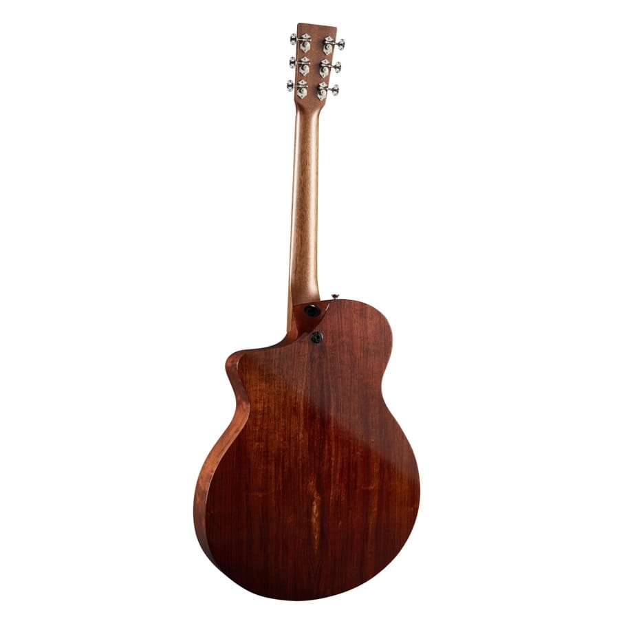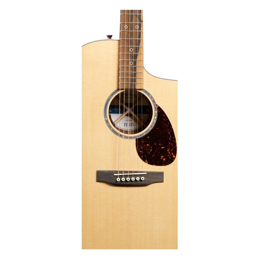 The SC-13E is a unique guitar from Martin. With the development of the SC guitars Martin mostly looked at the versatility and comfort of electric guitars. The body has a deep cut-out, which makes the neck a lot easier to play and you can easily reach the highest frets. Furthermore, the neck was specifically developed to make it as ergonomic as that of an electric guitar and makes it easier to go up and down the neck. The SC guitars were also specifically designed to be the ultimate semi-acoustic guitars. The asymmetric body makes sure there will be less feedback and the sound will be fuller and more authentic while amplified. Consequently, the guitar can be used as an electric guitar and will even sound beautiful with a distortion effect. Although it was designed for amplified use, it still sounds beautiful acoustically, making it the ultimate versatile guitar. It’s thus the ideal guitar for electric guitarists who want to play an acoustic guitar, and vice versa. The SC-13E Modern has a spruce top. Spruce has a beautiful resonance and produces a warm sound. The back and sides are made of laminated koa. Koa looks beautiful and adds a bright tone and a great resonance to the sound. The guitar has a ‘select hardwood’ neck. This means the neck is either made of cedar or mahogany, depending on which of the two Martin can obtain without having to participate in deforestation. Both tonewoods are great choices for a neck and the difference between the two is minimal. The guitar also has an ebony fretboard, which will provide a smooth playing surface.
