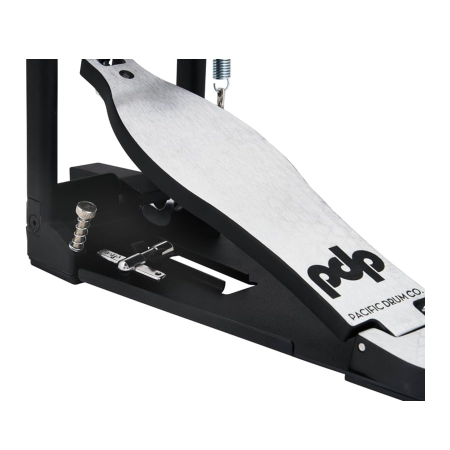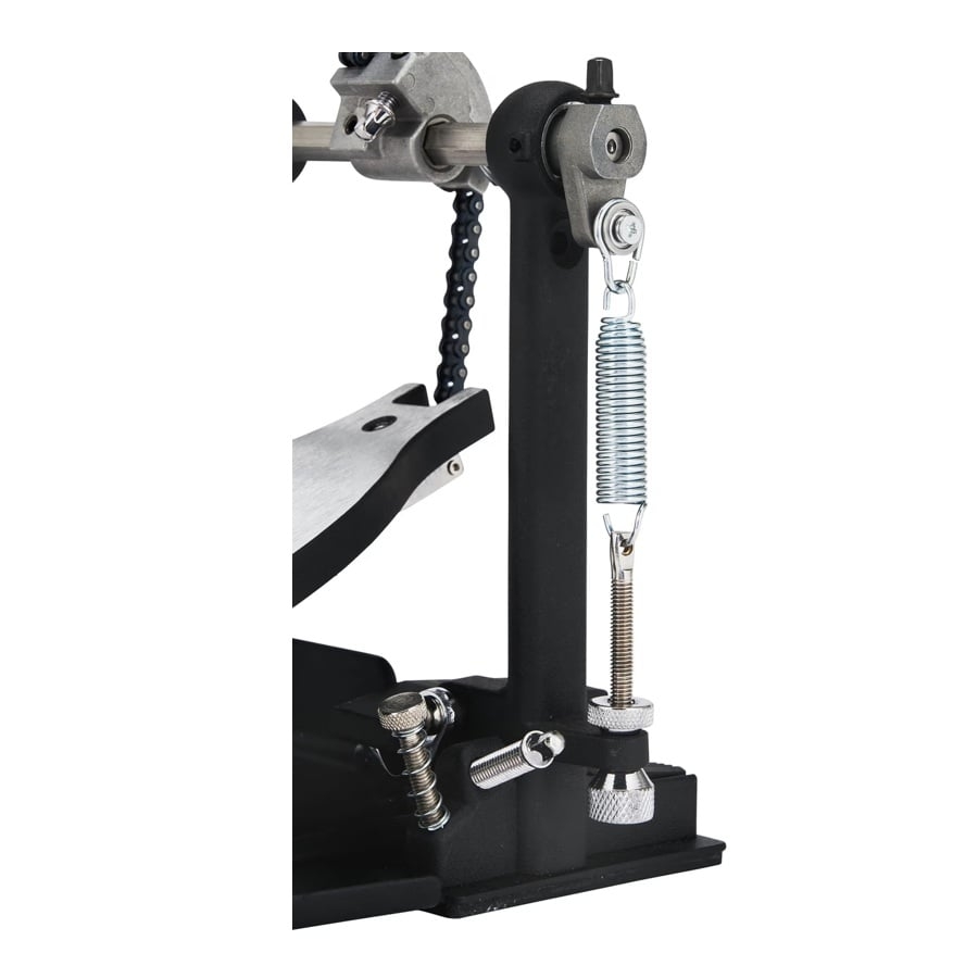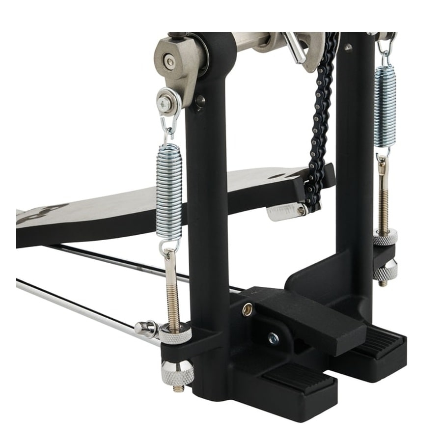 The DP712 is a handy double bass drum pedal from PDP Drums. The system consists of two pedals that are both connected to the system with one sturdy chain. One of the beaters is connected to the left pedal and the other to the right. The pedals also have a solid base plate and you can adjust the angle of the beater.