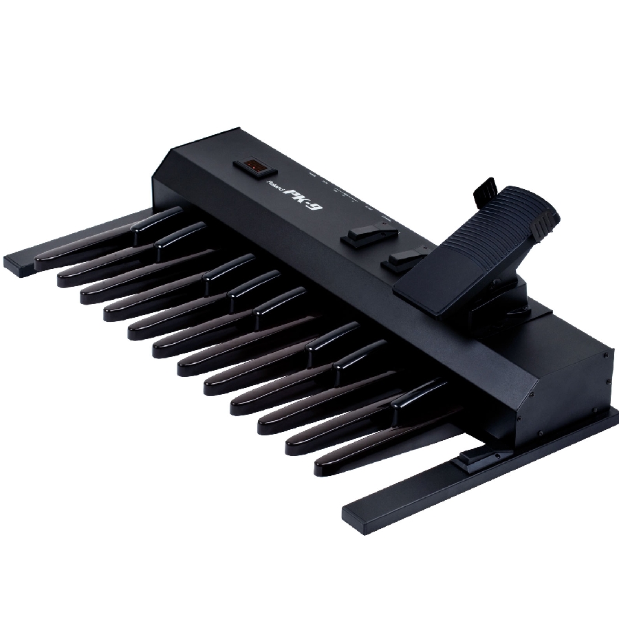 The new PK-9 20-note MIDI pedalboard is designed to pair perfectly with the Roland ATELIER Combo AT-350C and AT-900C, VR-/VK-series combo organs, the Classic Organ C-200, and other MIDI-compatible organs. Offering enhanced playability and many upgraded features, it’s the successor to the popular PK-7A pedalboard. A single PK cable is all that’s required to connect the PK-9 to a “PK-IN” equipped Roland organ; the cable supplies power to the pedalboard, as well as performance data to the host keyboard.