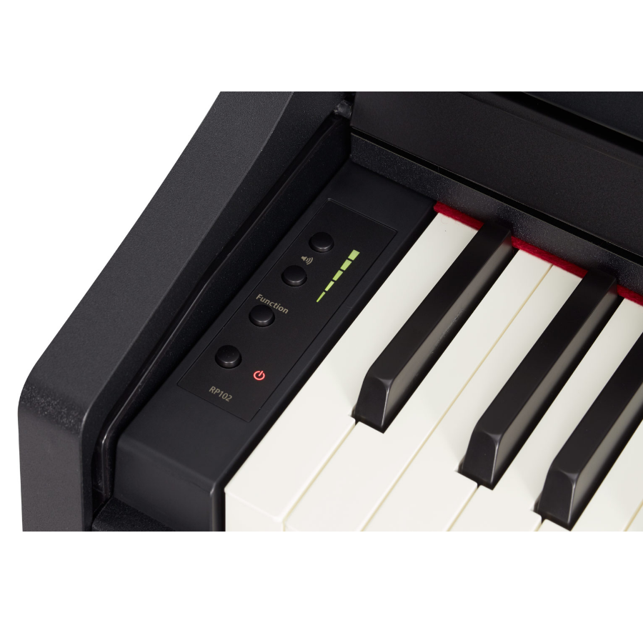 When choosing a piano, it’s essential to find an instrument that suits your lifestyle, budget, and space. The Roland RP102 delivers on all fronts, combining authentic piano performance and onboard practice features in a compact and affordable design. It’s filled with technologies derived from our award-winning premium pianos—including a luxurious and supremely playable weighted-action keyboard—providing inspiring sound and touch that will continually support your music as your skills evolve. And with its streamlined cabinet and three integrated pedals, the RP102 offers a traditional upright look that fits nicely anywhere space is at a premium.