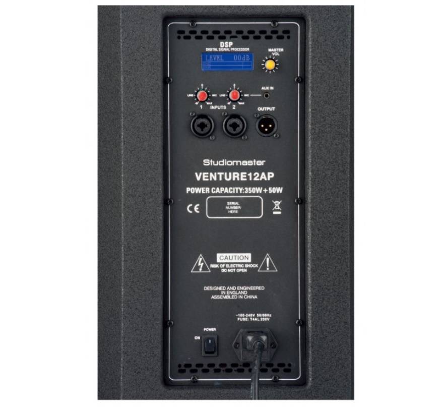 The Studiomaster Venture 12AP Active Speaker "12 is a two-way active speaker with a digital speaker processor. With an RMS output of 400 watts, 350 watts in the low, 50 watts in the high, you have more than enough power to fill smaller venues properly.