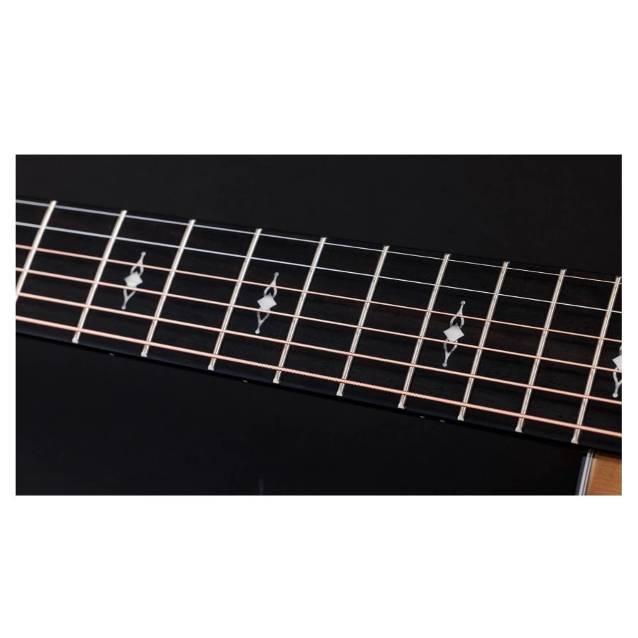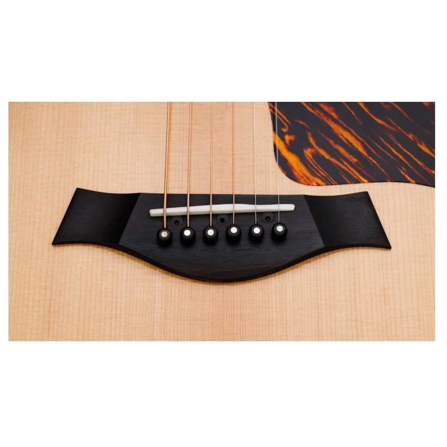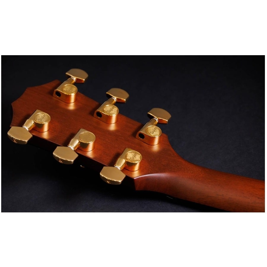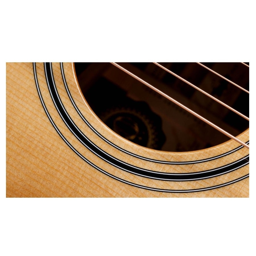 The 314ce is not only a great guitar, but it’s also the result of Taylor’s 50th anniversary! The body has a solid spruce top and solid sapele back and sides. This produces a warm and bright sound. The guitar has a mahogany neck and an ebony fretboard. Furthermore, the guitar has a Grand Auditorium body, which was designed by Taylor in 1994 and is their most popular model. The Grand Auditorium is a bit smaller than the Dreadnought and a bit bigger than the Grand Concert. This also makes it more versatile, as the Dreadnought was designed for rhythm guitar and the Grand Concert for fingerpicking. The Grand Auditorium is a combination of both. The guitar has ES2 electronics so the amplified sound will sound authentic.