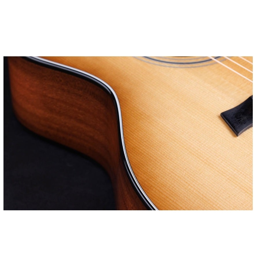 Taylor is an American company that was founded in 1974 when two boys bought an old hippie guitar shop. The boys were very passionate about guitars and put a lot of energy into the shop. Eventually, the shop evolved into an international company. All Taylor guitars today are made in either El Cajon in California or Tecate in Mexico. Taylor is very proud of this, because guitars that are produced close to headquarters go through a more thorough quality control process and employee satisfaction is better regulated. Taylor prioritises tone and comfort. All guitars are perfected and with modern luthier techniques the guitars can be made with more precision and consistency.