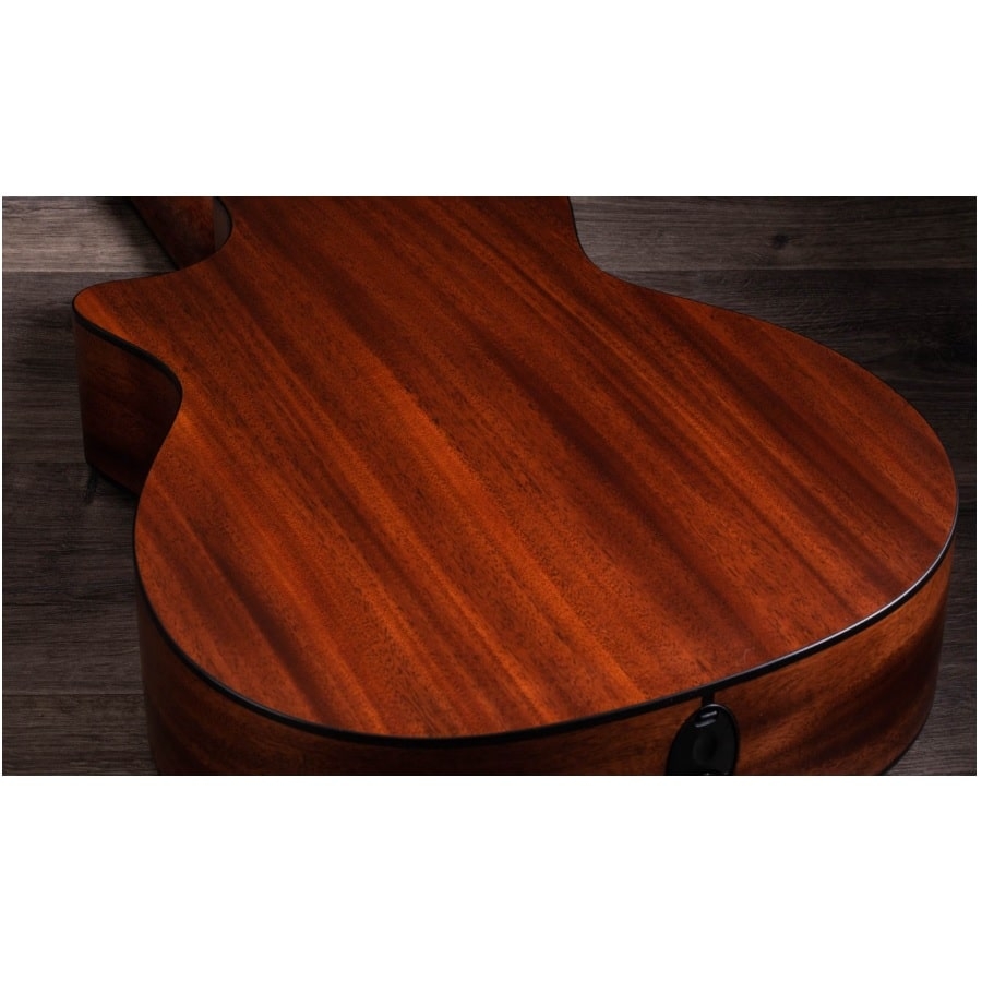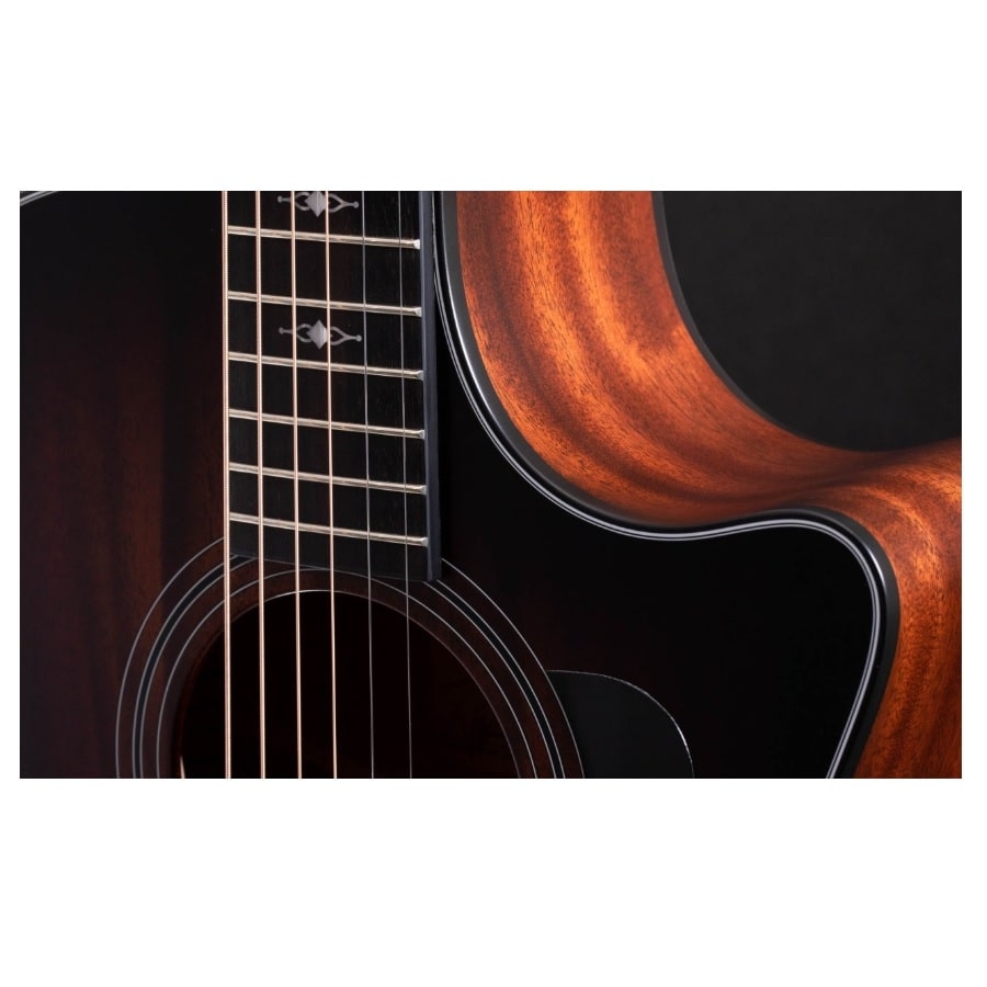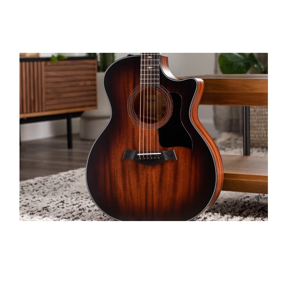 The 324ce is a great guitar. The body has a solid mahogany top, back, and sides. This produces an articulated and bright sound. The guitar has a mahogany neck and an ebony fretboard. The guitar has a Grand Auditorium body, which was designed by Taylor in 1994 and is their most popular model. The Grand Auditorium is a bit smaller than the Dreadnought and a bit bigger than the Grand Concert. This also makes it more versatile, as the Dreadnought was designed for rhythm guitar and the Grand Concert for fingerpicking. The Grand Auditorium is a combination of both. The guitar has ES2 electronics so the amplified sound will sound authentic.