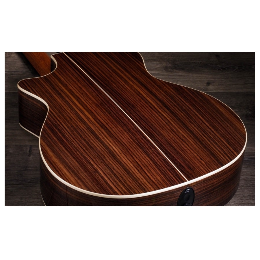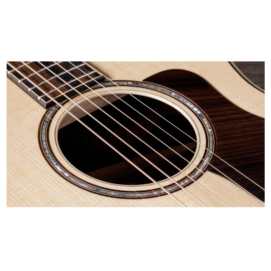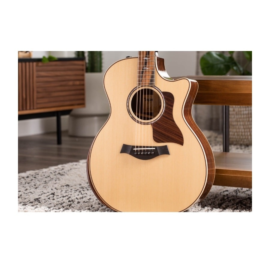 The 814ce is a great guitar. The body has solid rosewood back and sides which results in a balanced and resonant sound. The top of the body is made of solid spruce. Spruce produces a warm and bright sound. The guitar has a mahogany neck and an ebony fretboard. The guitar has a Grand Auditorium body, which was designed by Taylor in 1994 and is their most popular model. The Grand Auditorium is a bit smaller than the Dreadnought and a bit bigger than the Grand Concert. This also makes it more versatile, as the Dreadnought was designed for rhythm guitar and the Grand Concert for fingerpicking. The Grand Auditorium is a combination of both. The guitar has ES2 electronics so the amplified sound will sound authentic.