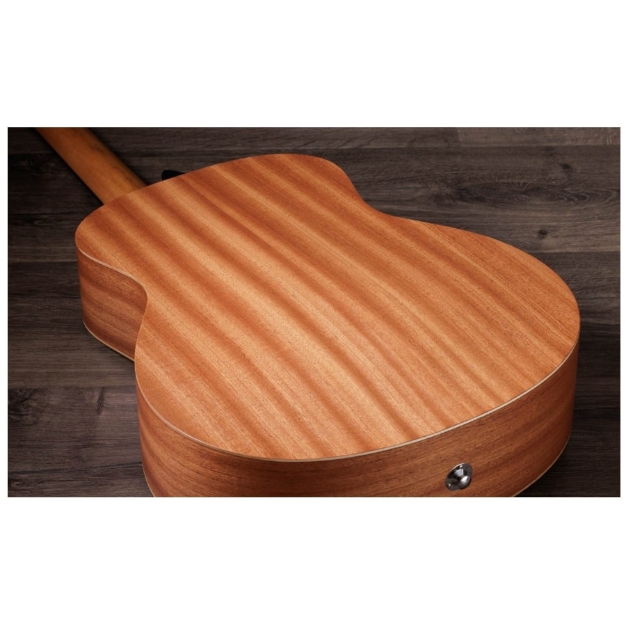 The GS Mini Sapele is a good guitar. The body has a solid spruce top and laminated sapele back and sides. This produces a warm and powerful sound. The guitar has a mahogany neck and an ebony fretboard. The guitar has a Grand Symphony Mini body.