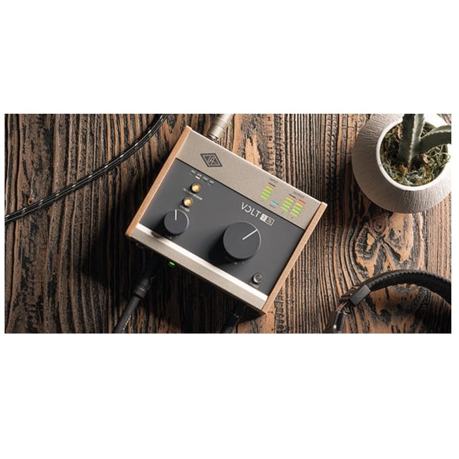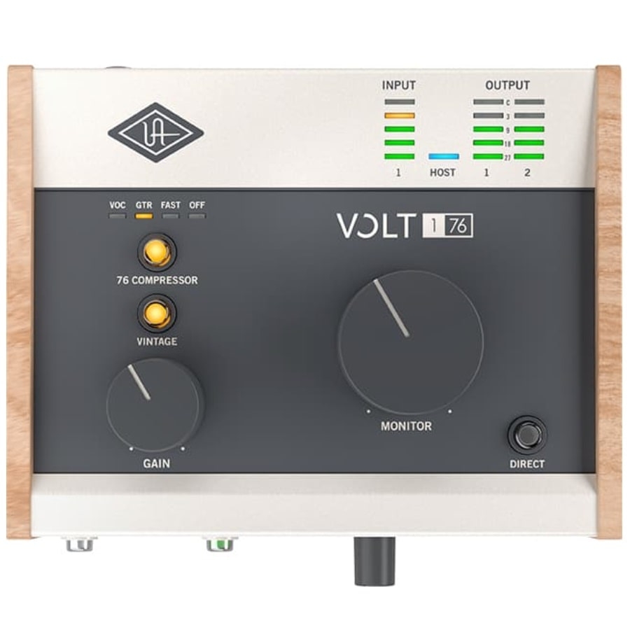 The Volt 176 is a handy interface by Universal Audio. The entire Volt series was designed to easily record sound with your laptop, PC, smartphone, or tablet. Additionally, the Volt interfaces are compact and easy to use. The Volt interfaces are also versatile, designed to be used for music, podcasts, streaming, and more! The Volt 176 has one XLR and jack input. Furthermore, the system has a headphone input with a separate volume control. The system also has a MIDI in and out and stereo monitor outputs. This compact interface also produces a studio-quality sound. This is largely due to the 76 compressor which makes sure the incoming sound is beautifully balanced without it affecting the authenticity of the sound.
