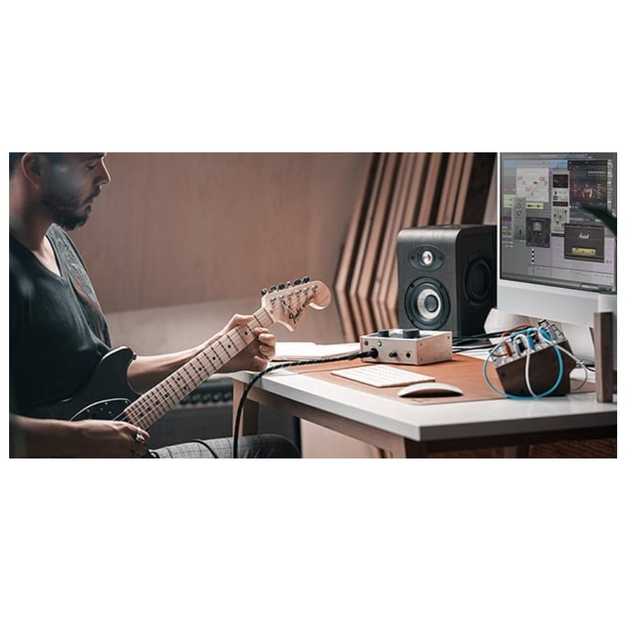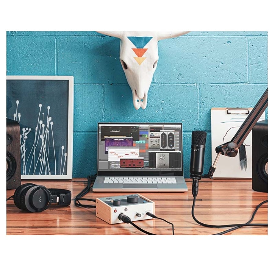 The Volt 176 comes with a meticulously curated collection of software, including the Marshall Plexi Classic Amp Bundle, the Ableton Live 11 Lite, the Melodyne Essential, the Ampeg SVT-VR Classic Bass Bundle, the LX480 Essentials, the Virtual Drummer DEEP, the Virtual Bassist DANDY en the LABS by Spitfire Audio.