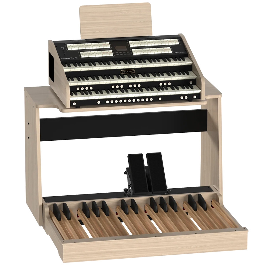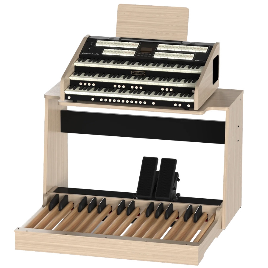 The Cantorum Trio Plus is supplied in light oak and includes a music stand. As optional accessories you will need a stand on which the organ can be placed. You can purchase an original stand, where a 27-tone or 30-tone pedal can be placed under the stand. Of course, you can also choose to place the organ on a cross stand or a Z-stand.