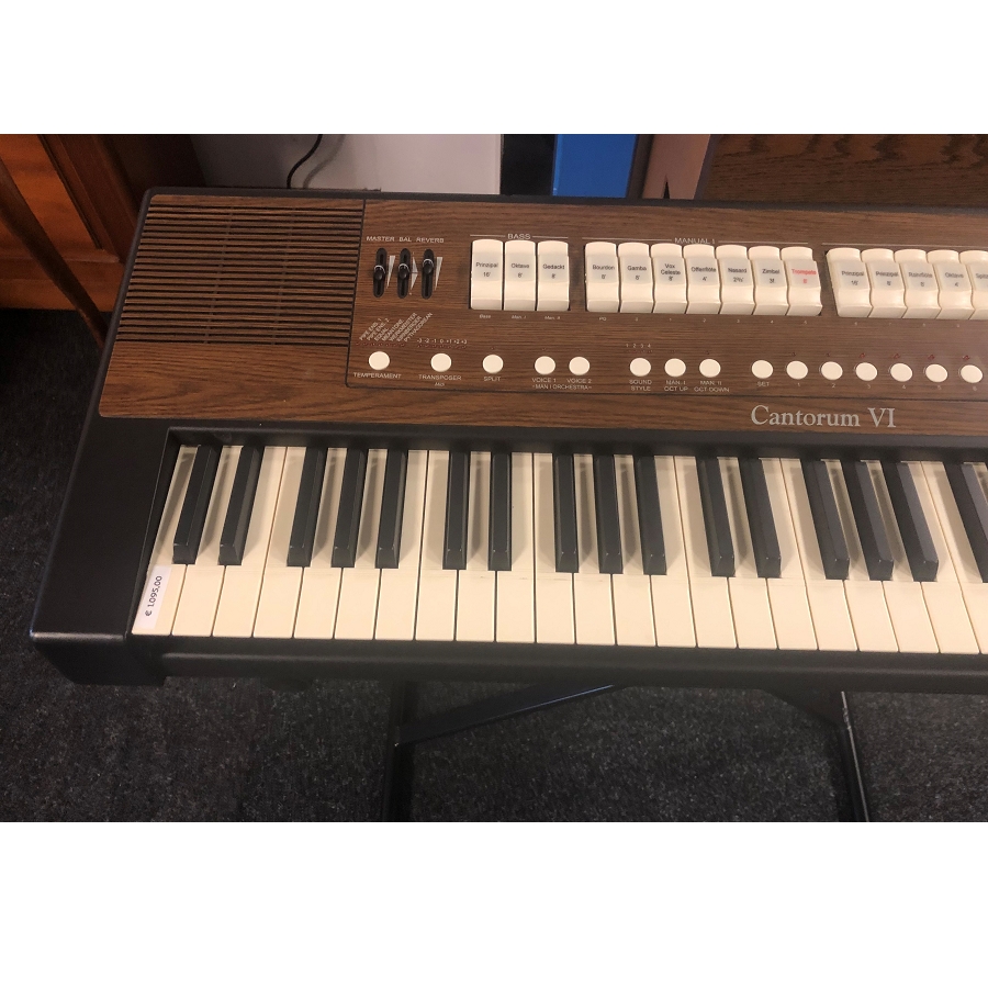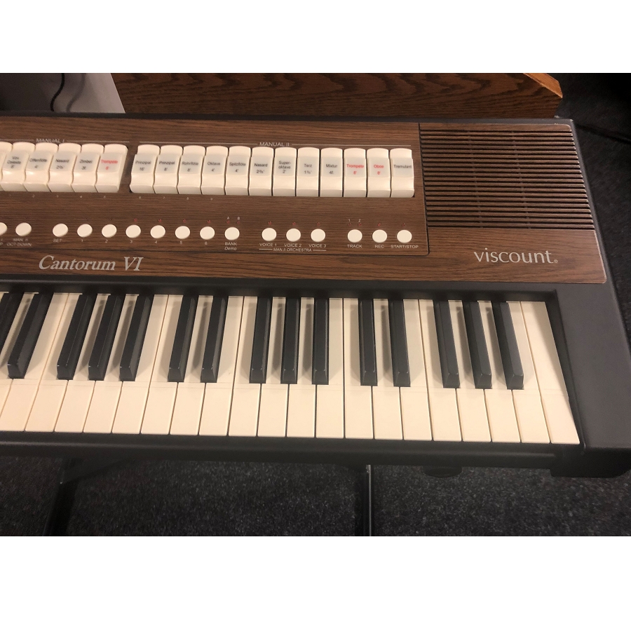 Young used Viscount Cantorum VI portable organ that is in very good condition. We supply this keyboard with a cross stand, Viscount volume pedal and a 6-month warranty.