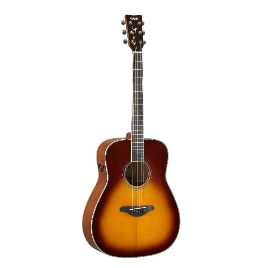 The FG-TA is a Dreadnought guitar. This is the most popular acoustic guitar shape as it’s ideal for rhythm guitar. The large bottom produces a deep resonance which will result in a full and loud sound. The guitar has a solid spruce top. Spruce is a sustainable tonewood which produces a warm sound, which is great for rhythm guitar. The back and sides are made of mahogany which will balance the sound properly and complements the spruce beautifully. The guitar has a nato neck and a rosewood fretboard. Rosewood is a sturdy tonewood with an equal surface. This will result in a comfortable playing experience. In short, the FG-TA can be used as a great traditional western guitar but can also be used with an innovative system with reverb and chorus!