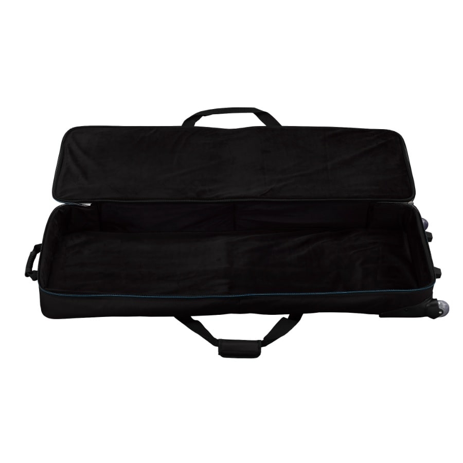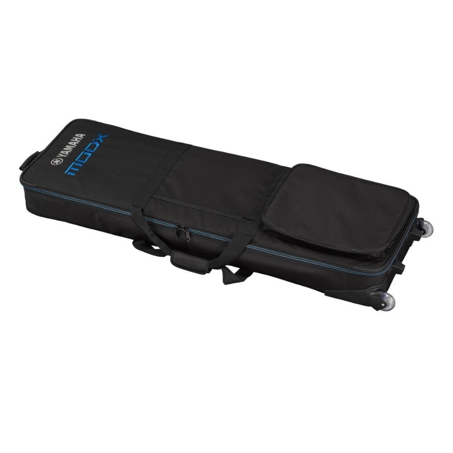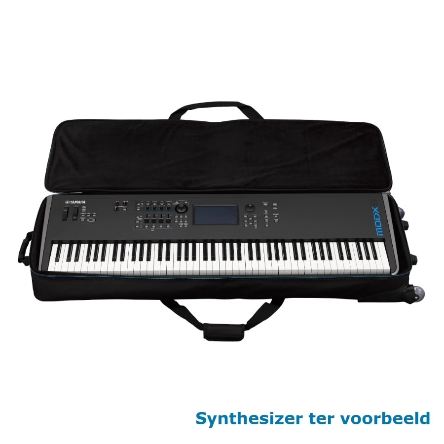 The SCMODX8 is a handy soft bag for Yamaha’s MODX8. The bag is perfectly sized for the MODX8. This is important, as the synthesizer shouldn’t shift around within the bag during transport. The bag has a 15 millimetre soft padding to prevent scratches. The size of the bag is 450 x 1430 x 230mm. The bag can be transported in three separate ways: with the shoulder strap, the handles, or with the wheels at the bottom. The bag contains two separate departments with which you can transport accessories.