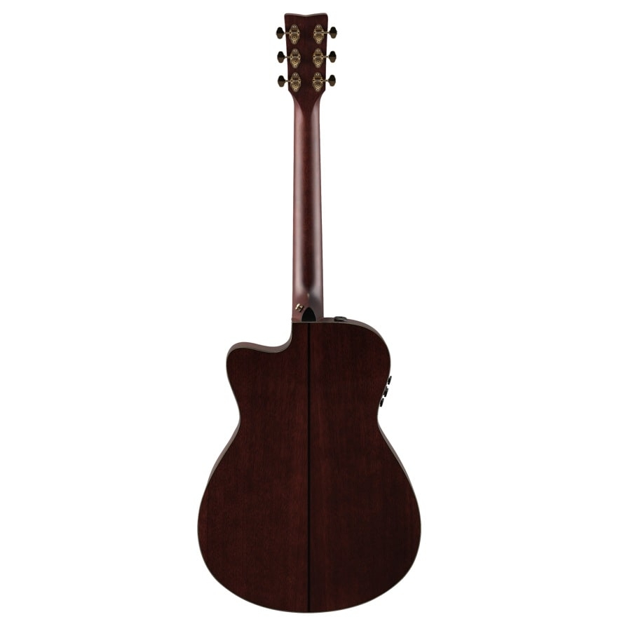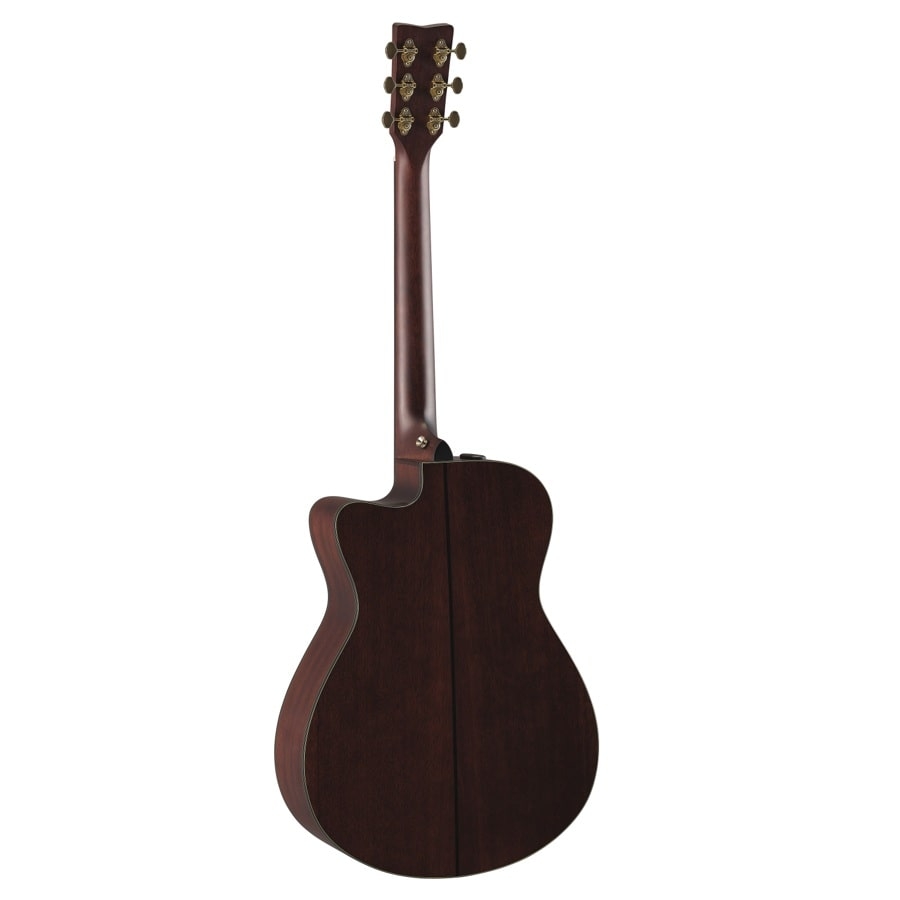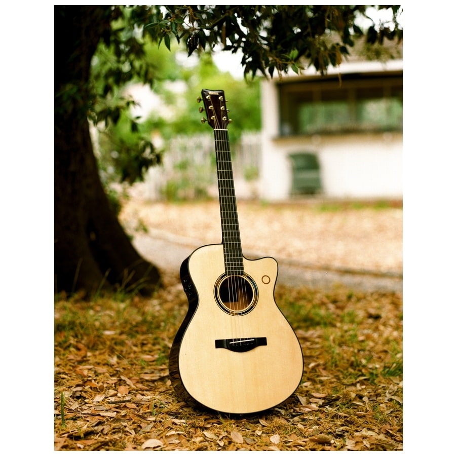 The TAS3 C is a Concert guitar. This is a comfortable shape and is a bit smaller than the popular Dreadnought. The guitar has a solid spruce top. Spruce is a sustainable tonewood which produces a warm sound, which is great for rhythm guitar. The back and sides are made of solid mahogany which will balance the sound properly and complements the spruce beautifully. The guitar also has a mahogany neck and an ebony fretboard. Ebony is a sturdy tonewood with an smooth surface. This will result in a comfortable playing experience. In short, the TAS3 C can be used as a great traditional western guitar but can also be used with an innovative system with reverb, delay, and chorus!