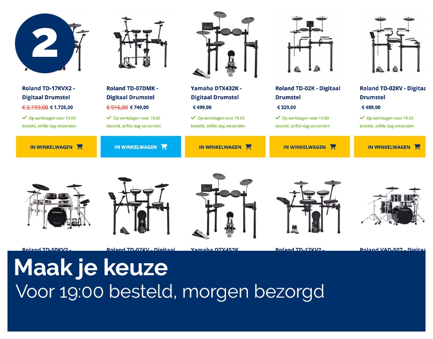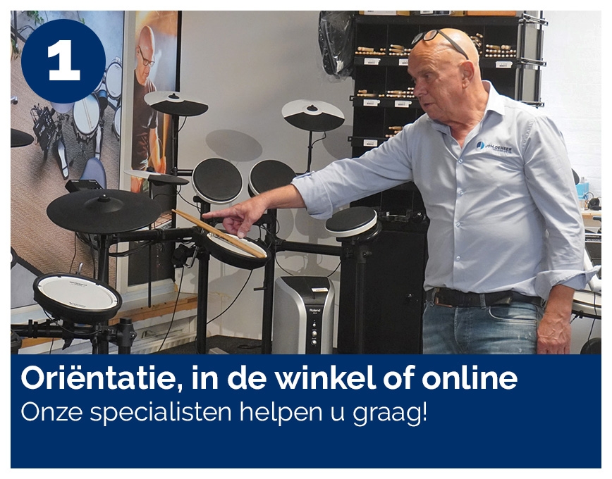 Welkom op de drumafdeling van Joh.deHeer Muziek! Wij hebben in onze showroom en op onze website een grote collectie digitale drumstellen, percussie en alle denkbare accessoires. Wij verkopen drumstellen van bekende merken zoals Roland en Yamaha. In onze 2500m2 grote showroom staan bijna alle modellen demoklaar opgesteld en onze specialisten geven je graag advies. Na bestelling kan je het drumstel of accessoire vaak direct meenemen of wij verzenden deze nog dezelfde dag!