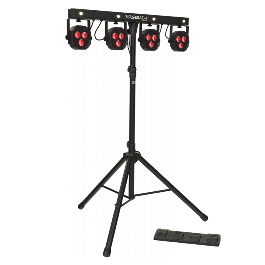 Das Stagebar II ist ein handliches LED-Lampensystem von Algam Lighting. Mit seinen vier leistungsstarken Lampen, die auch einen Stroboskopeffekt enthalten, ist es die perfekte Option für Auftritte. Außerdem ist es einfach zu installieren. In Sekundenschnelle ist es aus der Tasche gezogen und ausgeklappt. Diese Lichter sind auch für das Digibeet geeignet, da sie nicht im Voraus programmiert werden müssen. Das System verfügt über einen Music Mode, d.h. die Lampen reagieren auf Musik und bieten eine dynamische Lichtshow, die zur Musik passt. Die Lampen können aber auch mit dem mitgelieferten Fußschalter gesteuert werden.