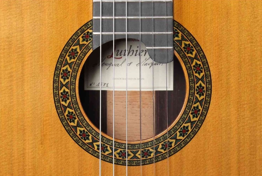 Entdecken Sie die Erhabenheit des Modells Luthier India, eine Gitarre in limitierter Auflage, die eine reiche spanische Tradition mit hochwertiger Handwerkskunst verbindet. Dieses musikalische Meisterwerk zeichnet sich durch sein außergewöhnliches Palosanto de India aus, das für den Boden und die Zargen sorgfältig ausgewählt wurde und über 30 Jahre alt ist, was ihm einen einzigartigen Charakter verleiht.