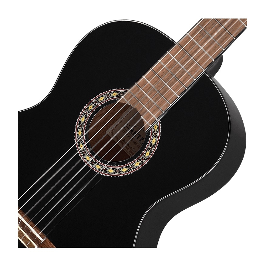 Die Estudiante XA-4/4 ist eine gute und erschwingliche Konzertgitarre von Artesano. Der niedrige Preis geht jedoch nicht auf Kosten der Qualität. Laut Artesano erfüllt die Gitarre die Anforderungen von "Studenten und Meistern". Die Gitarre hat eine 4/4 Größe, was die größte Größe ist. Dadurch hat sie mehr Raum für Resonanz und der Sound ist kräftiger. Die Decke besteht aus Fichtenholz, das für einen warmen Sound sorgt. Boden und Zargen sind aus Mahagoni gefertigt. Mahagoni hat ein gutes Sustain und eine feine Resonanz und sorgt für einen professionellen Sound. Der Hals ist ebenfalls aus Mahagoni und das Griffbrett aus Walnussholz gefertigt. Die schwarz polierte Farbe sorgt für ein auffälliges und professionelles Aussehen, während die goldenen Details und die geschnitzte Rosette der Gitarre ein klassisches Aussehen verleihen. Kurzum, eine schöne Konzertgitarre, die für Anfänger und Fortgeschrittene gleichermaßen geeignet ist!