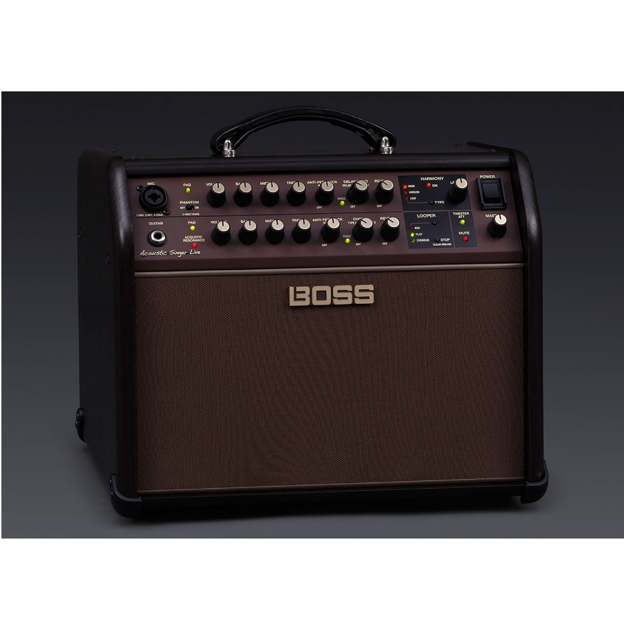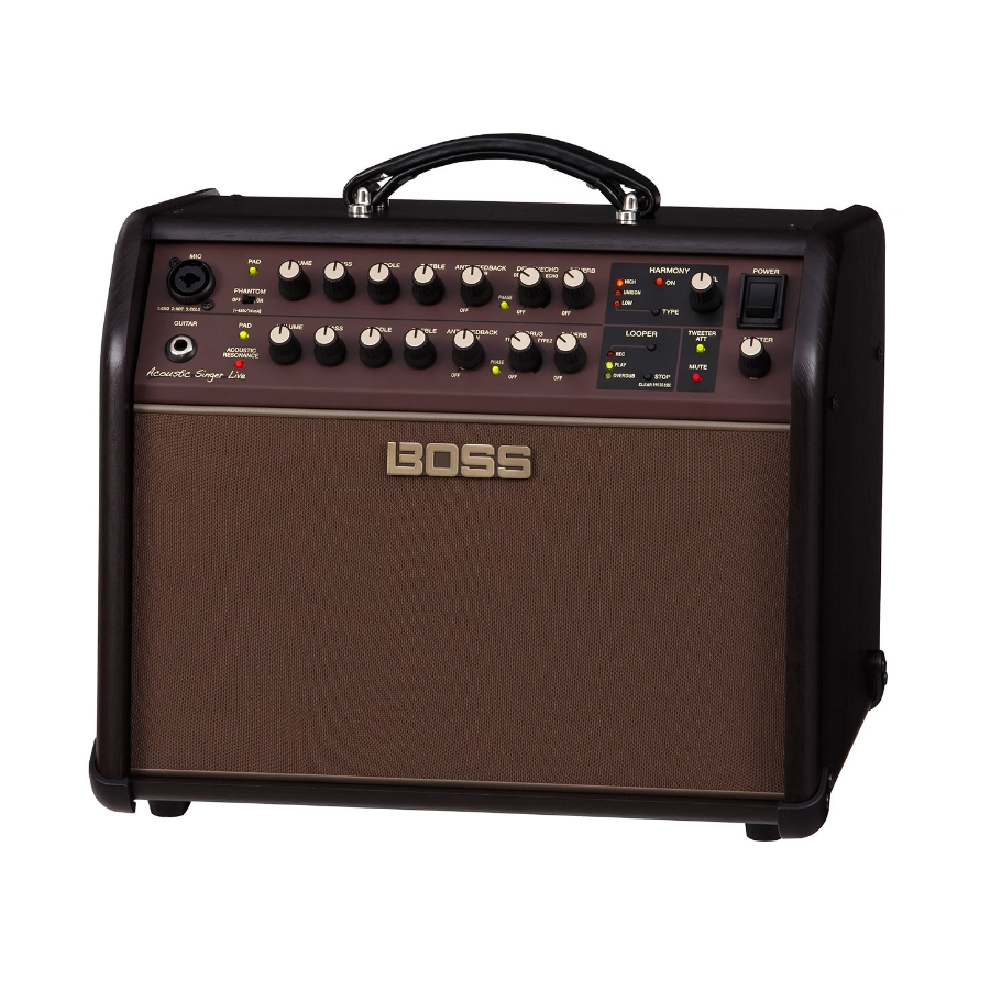 Der Acoustic Singer Live ist ein Stage Amp mit nie dagewesener Klangqualität und Vielseitigkeit. Mit den neuesten BOSS Verstärker-Entwicklungen ausgestattet, liefert dieses kompakte Kraftwerk einen satten, lebendigen Sound mit unvergleichlichem Druck und Klarheit. Der Acoustic Singer Live verfügt über unabhängige Kanäle für eine Akustikgitarre und ein Mikrofon, beide mit diskreter analoger Eingangsschaltung und Dreiband-EQ für einen Klang in Studioqualität. Dank der weiteren Features, wie Acoustic Resonance, einem Looper, automatischen Vocal-Harmonien, Effekten und mehr, bietet der Acoustic Singer Live Akustik-Musikern alles, was sie für inspirierende und eindrucksvolle Live-Performances benötigen.