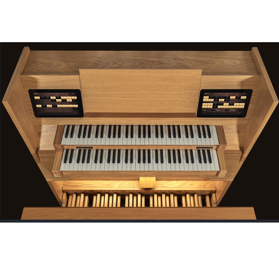 Die Orgel ist sehr einfach und selbsterklärend in der Bedienung. Über die beiden strategisch platzierten 10-Zoll-Touchscreens ist die Sweelinq-Schnittstelle zugänglich. Die Auswahl von Samplesets oder die Registrierung der gewünschten Registrierungen ist sehr einfach. Einzigartig ist die Aufnahmefunktion der Orgel, mit der Sie Ihr eigenes Orgelspiel aufnehmen oder abspielen können.
