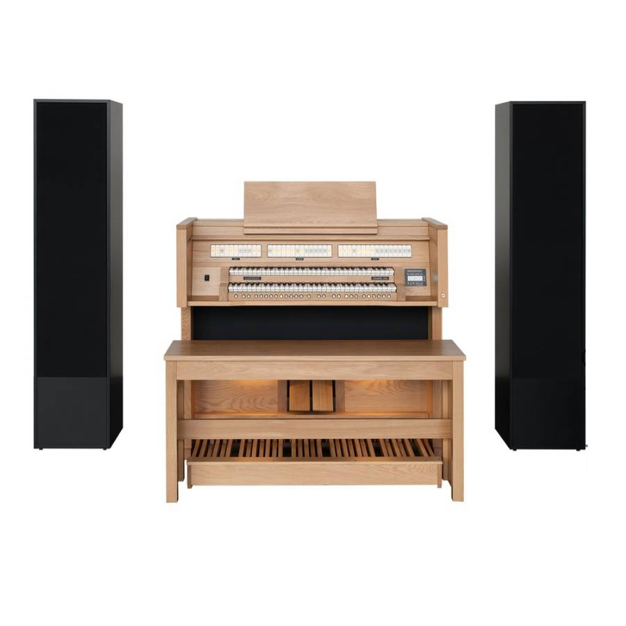 Die Orgel ist mit allen Annehmlichkeiten ausgestattet und für den Organisten bequem zu bedienen. So kann man beispielsweise ganz einfach über die Presets zwischen den Registrierungen wechseln. Mit den Schwellerpedalen lässt sich zudem die Lautstärke der Orgel ganz einfach regulieren. Darüber hinaus kann der Organist mithilfe der TAB-Register ganz einfach registrieren. Es stehen auch verschiedene Optionen zur Verfügung: Man kann sich beispielsweise für Fußpistons entscheiden und Manualen mit einem Holzkern erwerben, wodurch sich der Unterschied zu einer Pfeifenorgel minimiert.