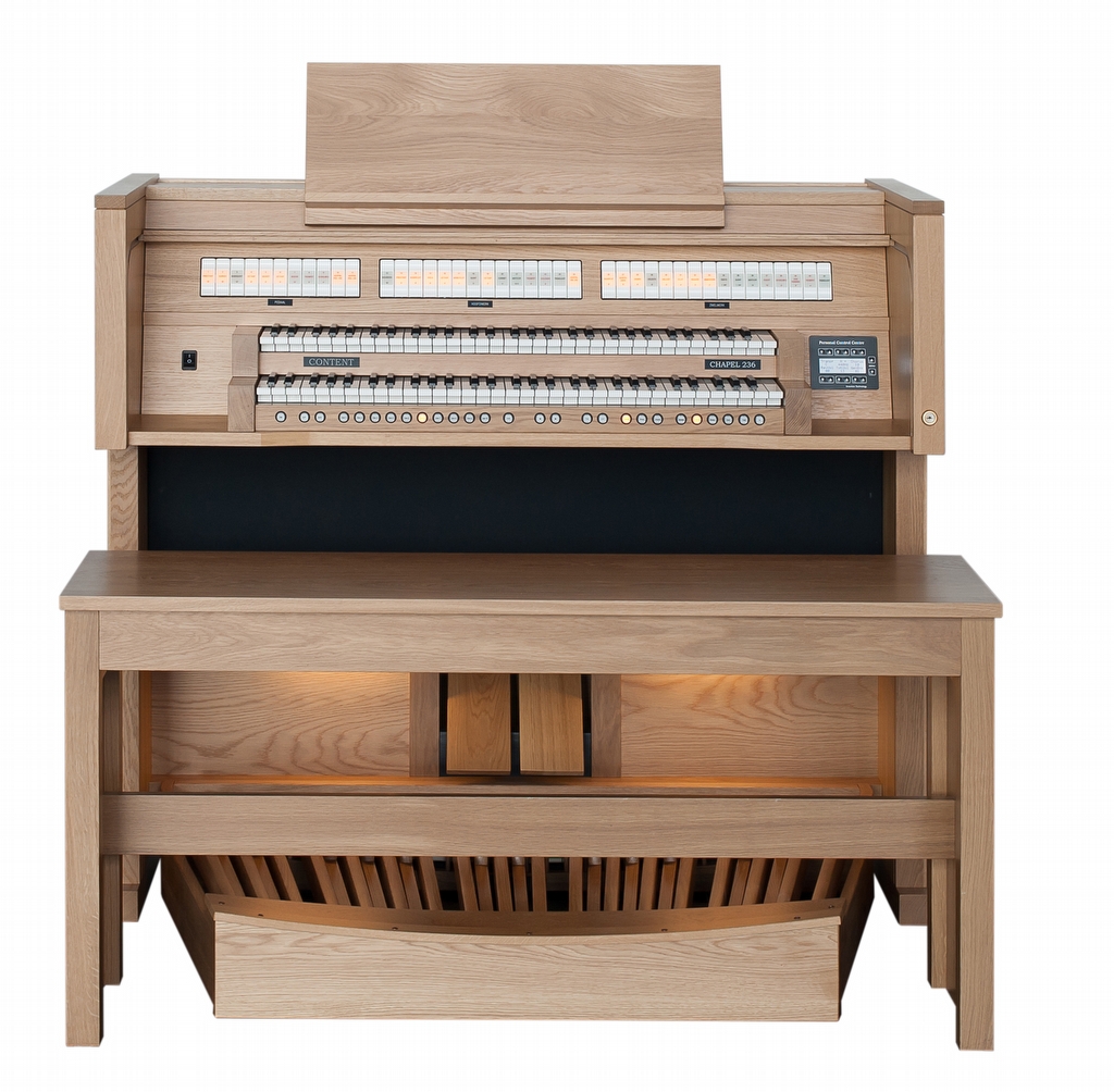 Die Content Chapel 236 intern ist eine der Kirchenorgeln von Content Orgelbau aus Ermelo. Die Chapel-Reihe von Content wurde speziell für den Bau von Kirchenorgeln entwickelt, was bedeutet, dass die Orgel sich hervorragend für die Begleitung des Gemeindegesangs eignet. Die Orgel mit 36 Stimmen und einem 30-tönigen Pedal wurde von verschiedenen Pfeifenorgeln aus verschiedenen Stilepochen gesampelt. Dadurch können Sie problemlos Musikstücke von Bach spielen, aber auch Reger klingt auf dieser Orgel fantastisch.