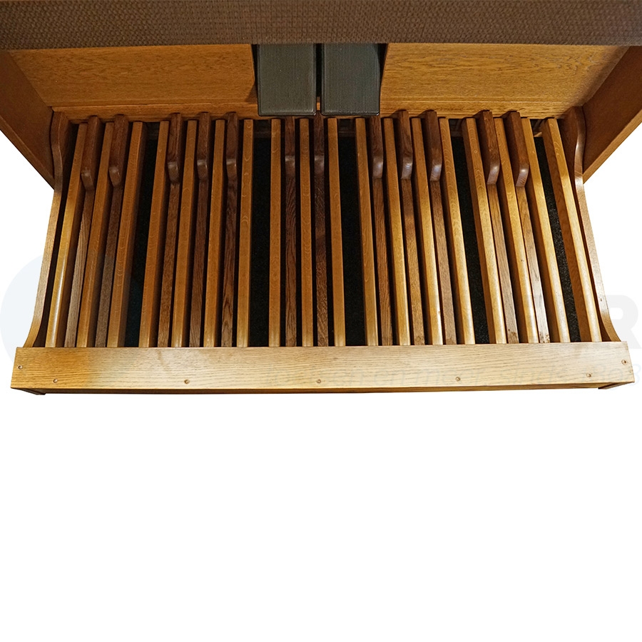 Selbstverständlich können Sie sich auch bei diesem Modell auf die hervorragende Verarbeitungsqualität von Dutch Content verlassen. Das Gehäuse ist sehr solide, es sind schöne Manuale eingebaut und in den Möbeln befindet sich ein warm klingendes Lautsprechersystem. Darüber hinaus enthält die Orgel die schönsten gesampelten Stimmen, wie zum Beispiel wunderschöne warme Streicher (Gamba und Celeste) und ein klares Kornett! Kommen Sie gerne vorbei und probieren Sie die Orgel in unserem großzügigen Showroom aus.
