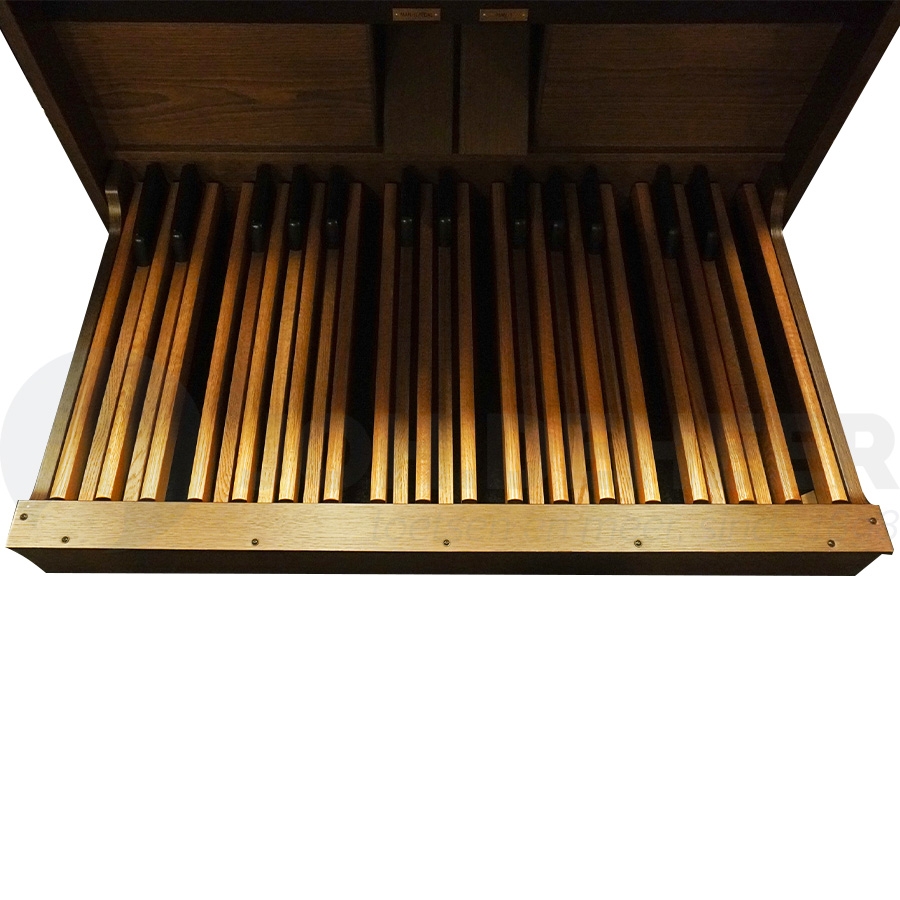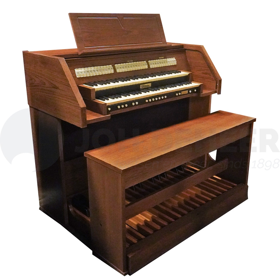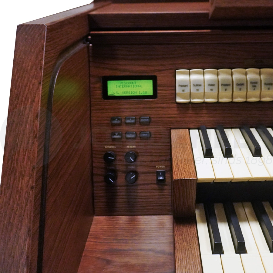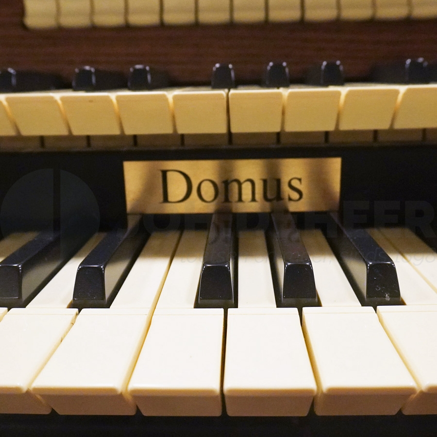 Klassische Orgel mit Massivgehäuse, mit 5x 31 digital gesampelten Stimmen. 2 Manuale mit 5 Oktaven und Druckpunkt, Patent von Domus. Vollmanuelle und Pedalkoppeln. Verstärkung von 3 x 70 Watt Stereo. 36 frei kombinierbare Registerkombinationen, mit + und - Tasten können Sie Ihre Kombination einfach abrufen. Hölzerne Schwellstufen für Manual I und Pedal und Manual II. Lautstärkeregler für Stereo-Hall. Display mit folgenden Einstellungen; 5 Intonationen, davon 2x Barock, 2x Romantisch und 1x Symphonisch; 110 extra Stimmen Bibliothek; Lautstärkeregler für jede Stimme; Auswahl von 8 verschiedenen Reverbs; einstellbare Tremulanten; Auswahl von alten Stimmungen u.a. Werckmeister/Mittelton; Equalizer zum Ausbalancieren der Orgel im Wohnzimmer.