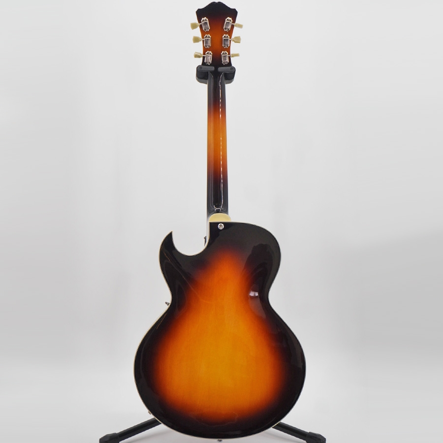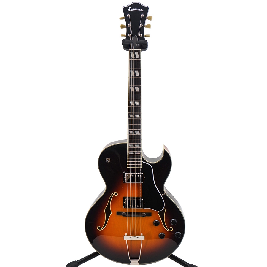 Die Eastman AR372CE ist eine hochwertige Westerngitarre mit Hollow-Body-Design, bekannt für ihren warmen, jazzigen Sound. Die Eastman AR372CE Sunburst ist eine wunderschöne 16-Zoll Archtop-E-Gitarre, inspiriert von den klassischen Jazzgitarren der Mitte des 20. Jahrhunderts. Die Gitarre verfügt über ein laminiertes Ahorn-Top, -Boden und -Zargen, was dem Instrument einen warmen und ausdrucksstarken Sound verleiht. Der dreiteilige Ahornhals und das Palisandergriffbrett sorgen für ein komfortables Spielgefühl.