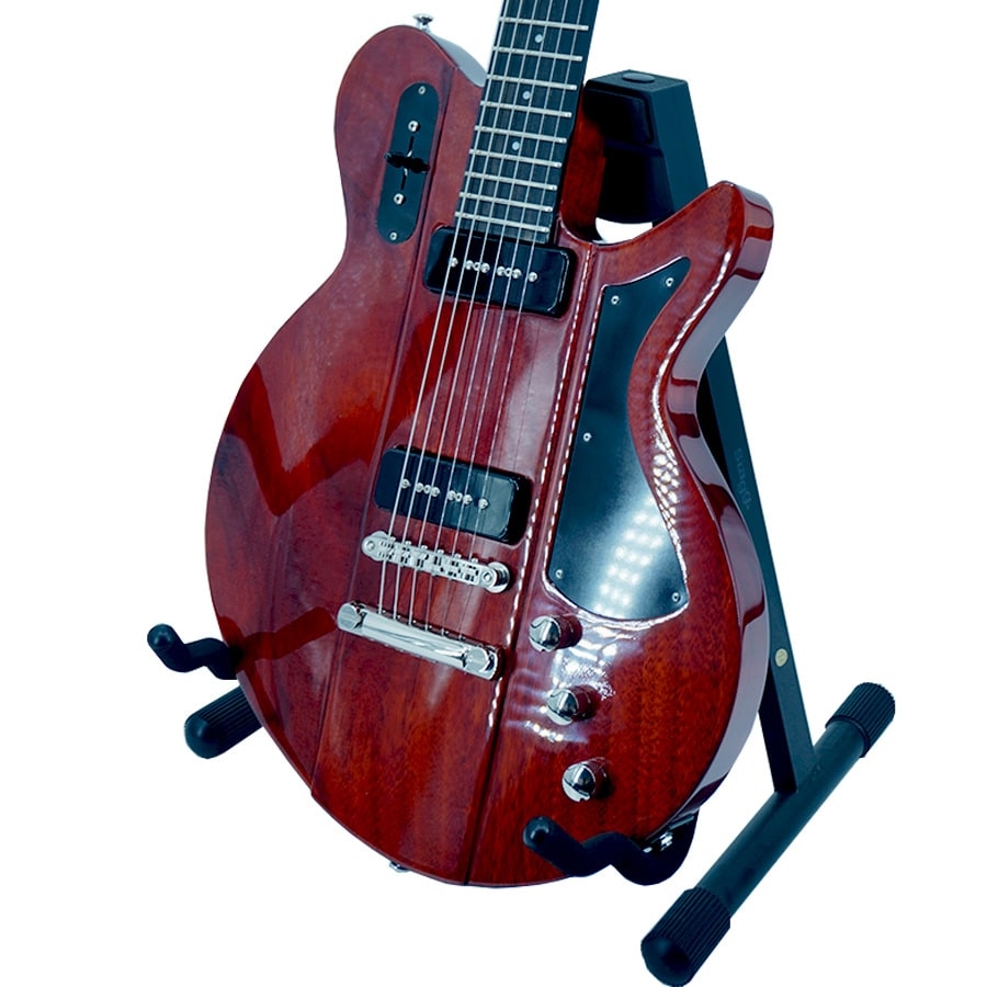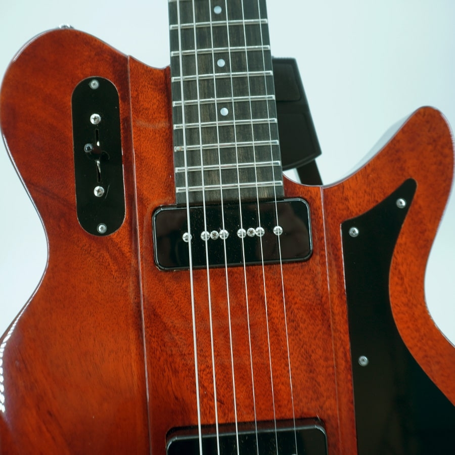 Die Juliet P-90 ist eine einzigartige Gitarre der beliebten Marke Eastman. Hals und Korpus bestehen aus einem einzigen Stück massivem Okoume, und sie ist mit zwei P-90-Pickups ausgestattet. P-90-Pickups sind sehr vielseitig, da sie die Vorteile von Single-Coils und Humbuckern vereinen. Sie erzeugen einen volleren und stärkeren Sound als ein Single-Coil und einen schärferen Sound als ein Humbucker. Die Gitarre wird in einer schönen Ledertasche geliefert.