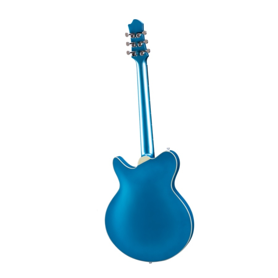 Die Eastman Romeo California ist die neue Thinline-Gitarre von Eastman. Thinline-Gitarren gehören zu den Hollow-Body-Gitarren. Hollow-body-Gitarren sind E-Gitarren mit einem Resonanzkörper. Die Resonanz der Saiten wird im Inneren des Korpus eingefangen und mit den Tonabnehmer umgesetzt. Durch diesen Prozess entsteht ein einzigartiger Klang, der von keiner anderen Art von Gitarre reproduziert werden kann. Allerdings kann der Klang je nach Holzart und Tonabnehmer unterschiedlich ausfallen. Die Kombination ist entscheidend, und oft klingen Hollowbody-Gitarren mit P90s oder Humbuckern großartig, da dies einen Vintage-Sound erzeugt. Thinlines funktionieren etwas anders. Sie haben einen Resonanzkörper, aber dieser ist viel dünner. Das verhindert Feedback und sorgt für ein besseres Spielgefühl. Außerdem wird die Resonanz des Holzes besser genutzt, wodurch der Klang authentischer und wärmer wird. Thinline-Gitarren klingen also im Allgemeinen großartig, besonders für Gitarristen, die einen Vintage-Sound suchen.