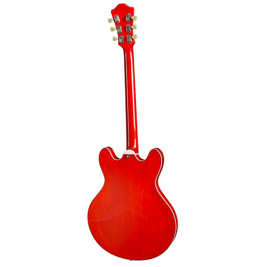 Die Eastman T386 ist – genau wie das Originalmodell der 335 – aus laminiertem Ahorn für Decke, Zargen und Boden gefertigt. Das wunderschöne rote Finish erinnert sofort an die Vintage-Gitarren der 1950er- und 1960er-Jahre. Der Hals hat ein modernes C-Profil und mit dem 12-Zoll-Griffbrettradius lassen sich Bends mühelos spielen. Die Humbucker-Tonabnehmer stammen von Kent Armstrong und sind von sehr hoher Qualität. In Kombination mit der hochwertigen Gotoh-Hardware aus Japan erhält man eine Gitarre in professioneller Qualität – und das zu einem erstaunlich günstigen Preis. Neben dieser großartigen Gitarre erhalten Sie außerdem ein offizielles Zertifikat sowie ein stabiles Hardshell-Case. Alles in allem: eine voll ausgestattete und wunderschöne Semi-Hollow-Gitarre zu einem noch besseren Preis.
