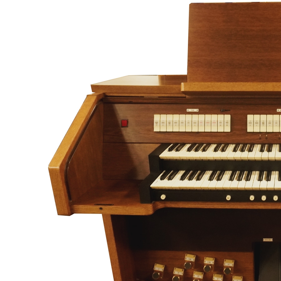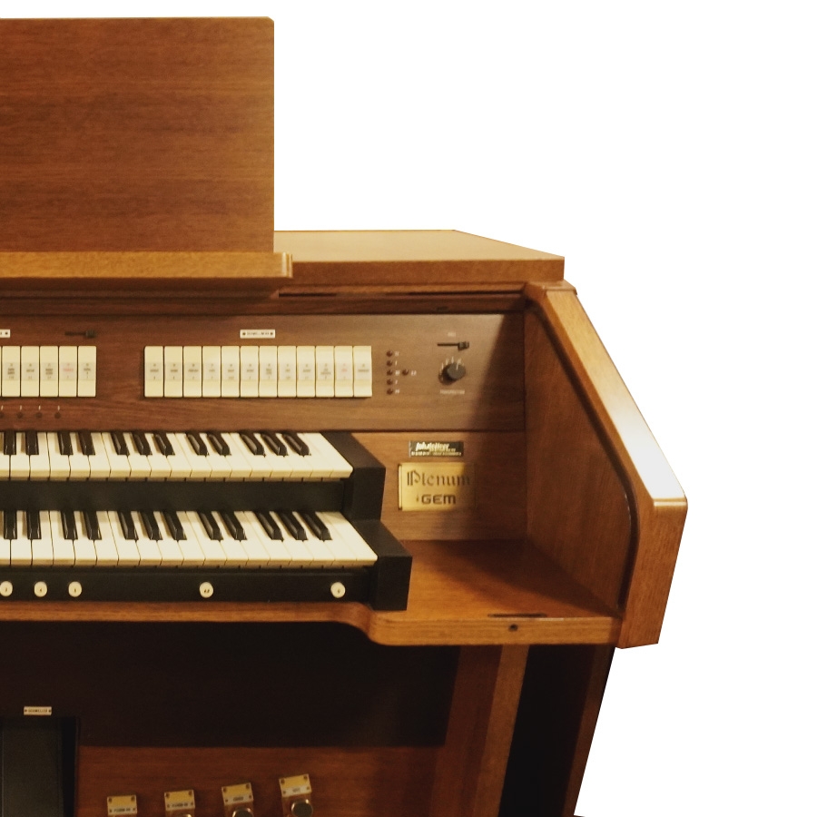 Schöne Gem Plenum-Digitalorgel, bestehend aus zwei Manualen und einem 32-tönigen Pedal. Die Orgel verfügt über eine schöne umfangreiche Disposition und ein leistungsstarkes Audiosystem mit zwei 70-Watt-Verstärkern und vier Lautsprechern.