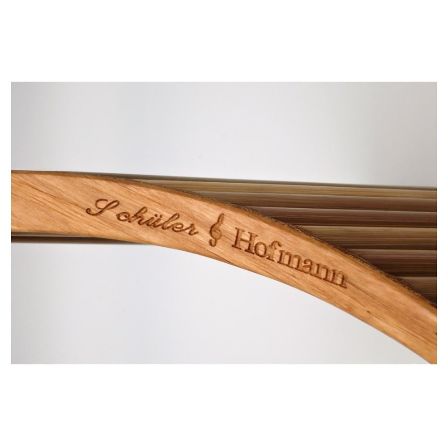 Die Student 22 ist eine feine Panflöte von Hofmann. Hofmann ist ein deutsches Unternehmen, das hochwertige Panflöten herstellt. Hofmann fertigt seine Panflöten gewissenhaft und von Hand. Sie verwenden dafür nur die besten Holzarten und wählen die besten auf dem Markt aus. Sie konzentrieren sich darauf, sicherzustellen, dass ihre Panflöten einen großartigen Klang haben und sehr angenehm zu spielen sind. Daher ist die Qualität ihrer Panflöten auch konstant und sie haben einen großartigen Kundenservice. Diese Panflöte hat 22 Pfeifen mit einem Tonumfang von G1 bis G4. Dieses Instrument hat also einen breiten Bereich. Eine G-Dur-Stimmung ist daher beliebt, was die Panflöte sehr vielseitig macht. Denken Sie also daran, dass Sie eine Panflöte in der richtigen Stimmung auswählen. Die zwei gebräuchlichsten Stimmungen sind C-Dur und G-Dur. Die Panflöte ist aus Bambus, die schön aussieht und einen schönen authentischen Klang hat. Im Laufe der Geschichte wurden Panflöten meist aus Bambus oder Schilf gefertigt, weshalb sie auch heute noch beliebt sind. Die Panflöte hat auch eine gebogene Form, was bequemer ist, weil sie die gleiche Krümmung wie Ihr Hals hat.