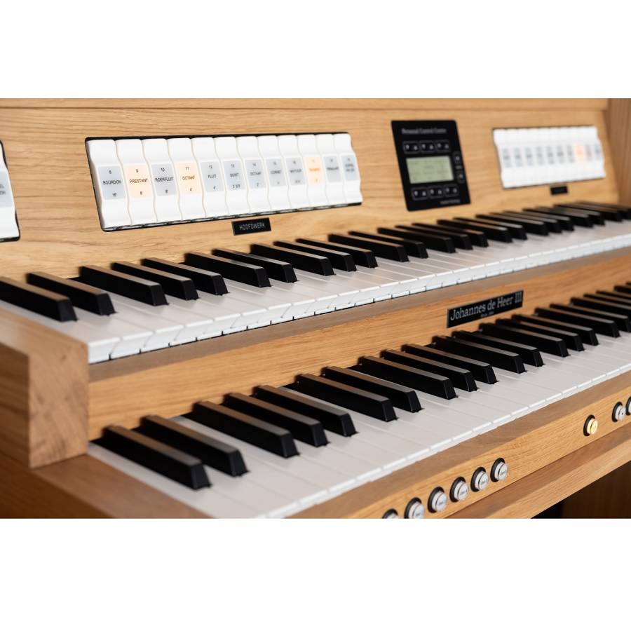 Die Johannes de Heer III, die kompakteste und erschwinglichste klassische Orgel in den Niederlanden! Mit diesem Modell machen wir eine Qualitätsorgel für eine große Gruppe von Organisten zugänglich. Die Orgel hat viele einzigartige Eigenschaften, wie zum Beispiel die innovative Invention Technology. Diese Technologie sorgt dafür, dass der Klang und das Erlebnis der Orgel auf ein höheres Niveau gehoben werden. Das moderne Aussehen und die kompakten Abmessungen vervollständigen sie. Das solide Gehäuse mit 27-tönigem Pedal ist sehr sorgfältig verarbeitet und komplett aus Massivholz gefertigt. Aufgrund ihrer Abmessungen ist sie die kompakteste klassische Orgel, die es gibt, perfekt für jedes Wohnzimmer!