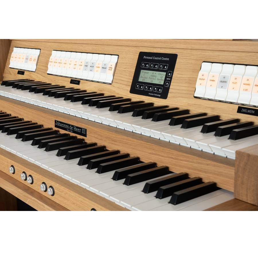 Die Johannes de Heer III ist eine klassische Orgel, die aufgrund ihrer Detailliertheit und Raffinesse ein dynamisches und lebendiges Instrument ist, das man immer wieder gerne spielt und das einen begeistert. Die schönen Klänge der Orgel sind in vier Klangstile unterteilt, nämlich Barock, Klassik, Romantik und Symphonik. Diese schönen Klänge werden von dem hochwertigen Multichannel-Lautsprechersystem, bestehend aus 6 Kanälen und 6 Lautsprechern, hervorragend wiedergegeben. Diese Lautsprecher werden durch einen 30-Watt-Digitalverstärker verstärkt.