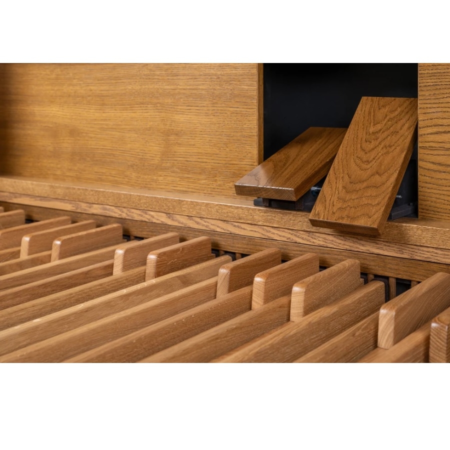 Jeder Raum ist einzigartig und erfordert daher einen anderen Ansatz für Audiosysteme. Aus diesem Grund ist die Opus Choir in zwei Varianten erhältlich. Diese interne Version ist mit einem 4.1-Audiosystem ausgestattet, das in der Rückwand der Orgel untergebracht ist. Diese Orgel ist auch in einer externen Version erhältlich, bei der die Lautsprecher im Raum platziert werden. Unsere Spezialisten beraten Sie gerne, welche Lösung für Ihren Raum die beste ist.