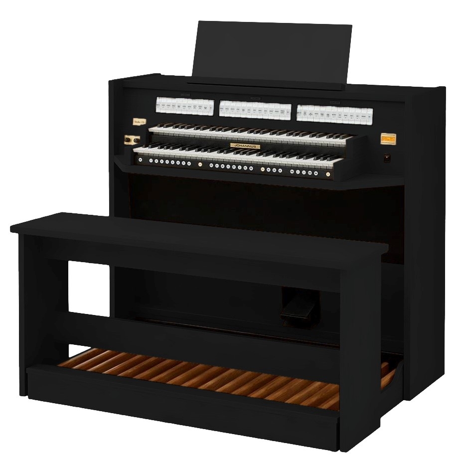 Die Variationen, die man mit dem Johannes Studio 150 machen kann, sind endlos. Die Orgel hat 28 Stimmen, aber das ist noch nicht alles. Jede Stimme kann in vier verschiedenen Stilen gespielt werden: romantisch, symphonisch, barock und historisch. Da jede Stimme in jedem Stil völlig anders klingt, kann man die Orgel auf seine persönlichen Klangvorlieben oder auf die Werke der Komponisten, die man spielen möchte, abstimmen. Für Liebhaber gibt es auch die Studio 350, eine Orgel mit drei Manualen und einer etwas umfangreicheren Disposition mit 37 Stimmen.