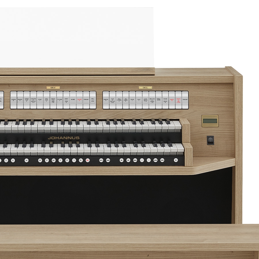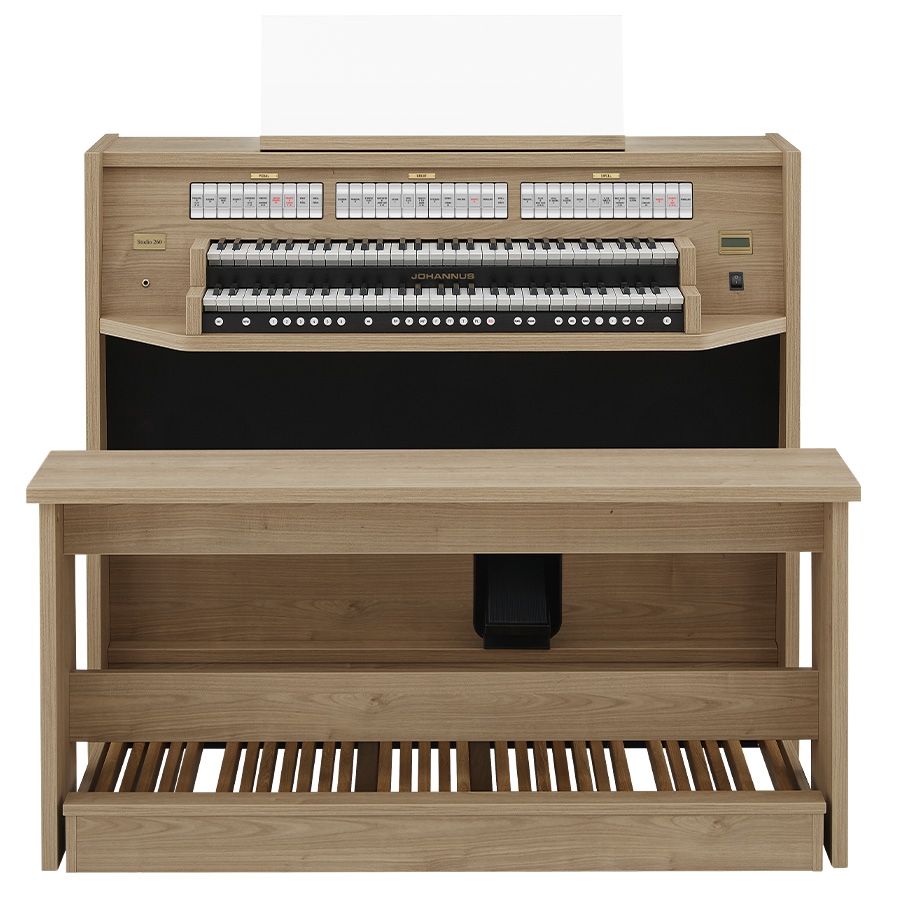 Die Studio 260 ist eine zweimanualige Orgel, die in vier Farbvarianten erhältlich ist. Bei diesem Modell handelt es sich um eine Light Oak-variante mit dem Namen Light Riverside. Neben dieser Ausführung ist die Orgel auch in den Farben Nautilus Teak, Charcoal Black und Wenge erhältlich. Für diejenigen, die eine Orgel mit drei Manualen bevorzugen, ist die Johannus Studio 360 auf dem Markt oder sogar das Positivmodell Studio P360.