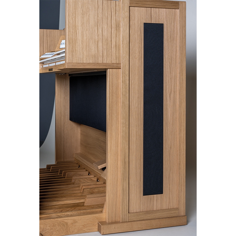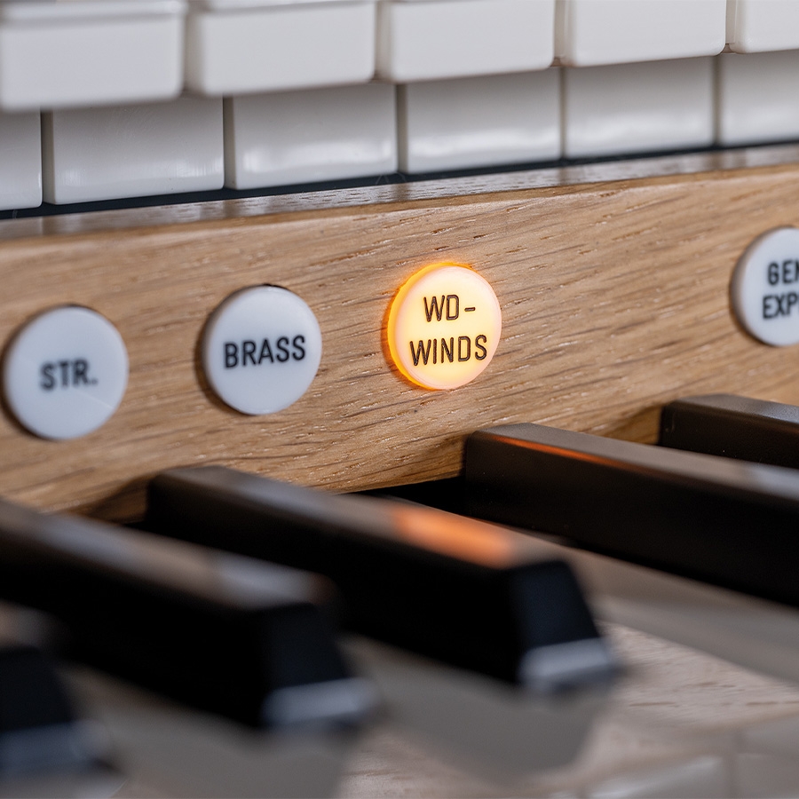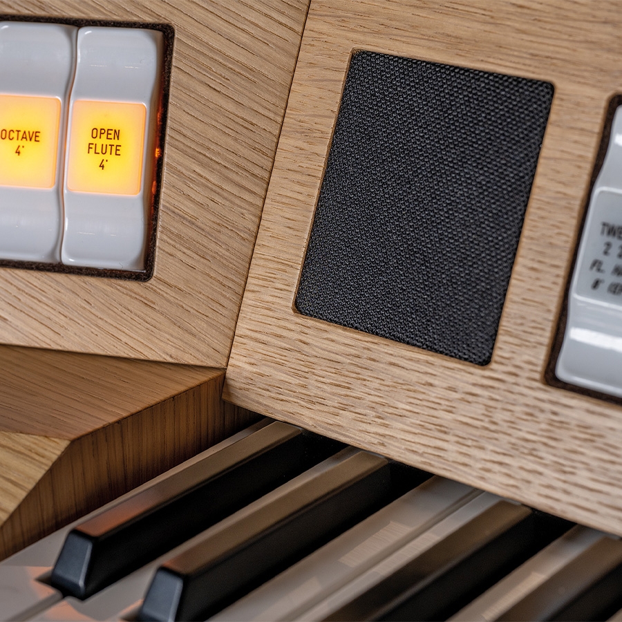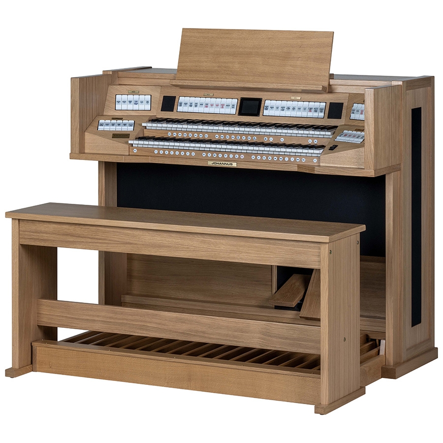 Die Johannus Vivaldi 260 ist die zweimanualige Version der Serie und bietet mit 41 Stimmen eine große Auswahl an Registrierungsmöglichkeiten. Alle diese Klänge stammen natürlich von HD-SS-Samples. Das beeindruckende 8.1-Audiosystem sorgt für ein beeindruckendes Erlebnis, egal wo man spielt. Dank des eingebauten Subwoofers und der Top-Kanäle wird jede Nuance Ihres Spiels hörbar.