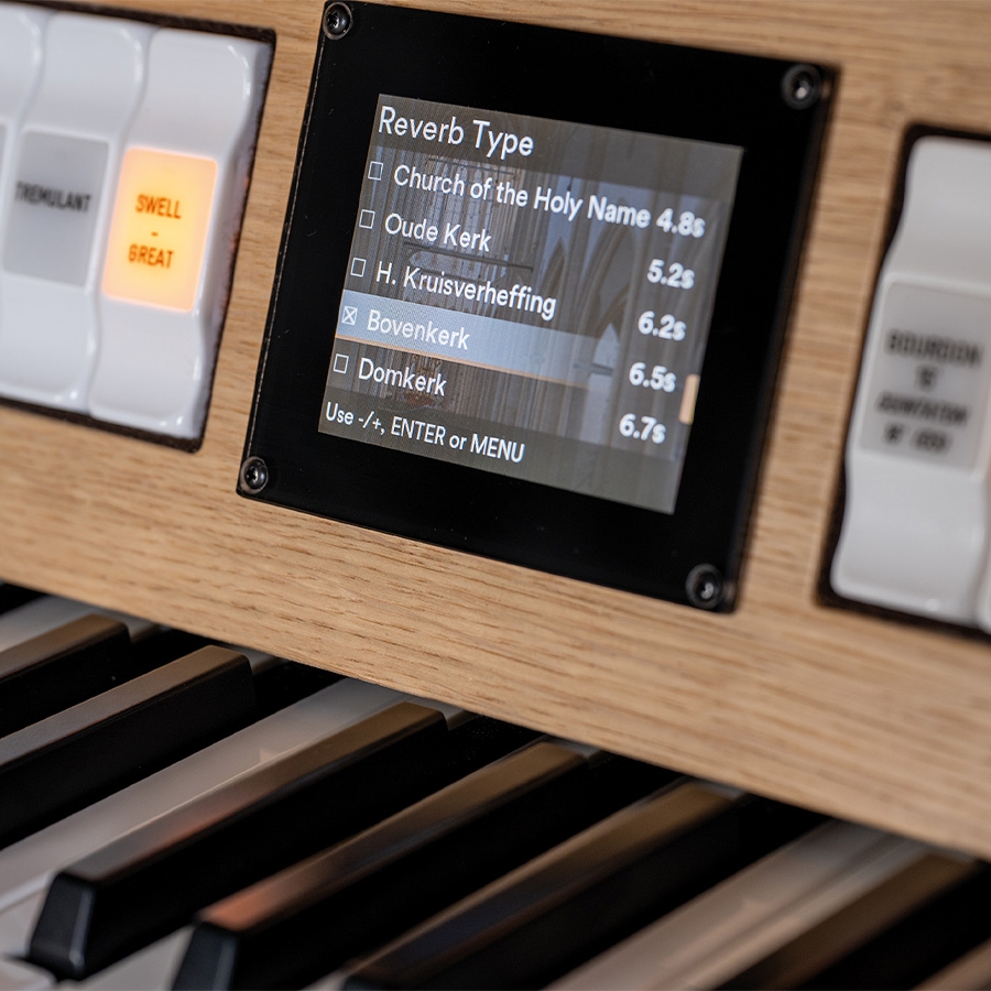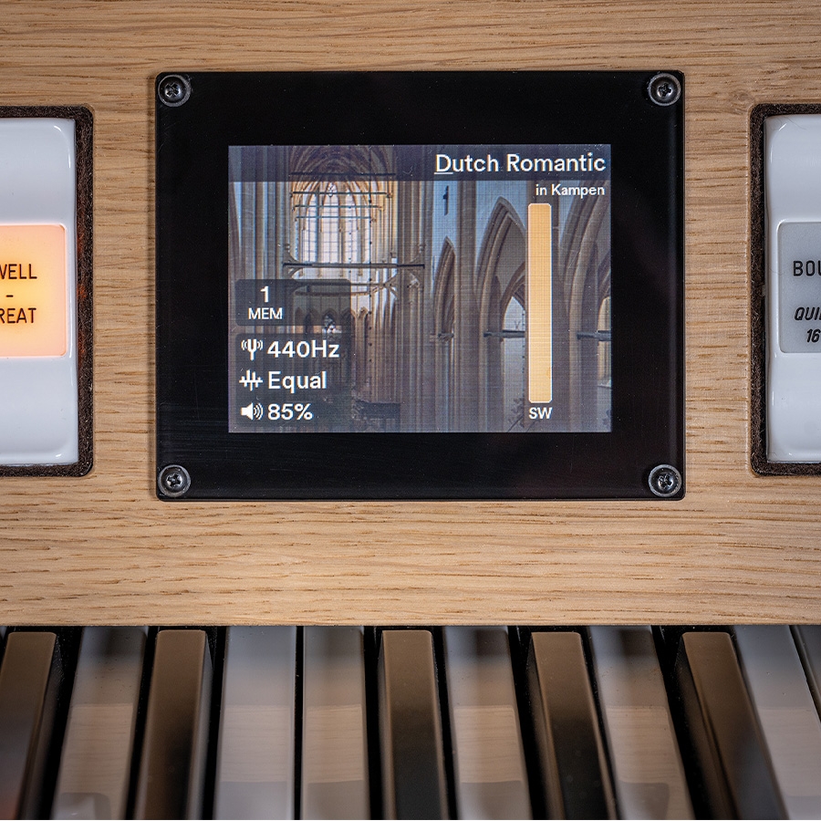 Mit der Ambience-Funktion kann man sogar zwischen vier verschiedenen Hörpositionen wählen, um den Nachhall so zu erleben, als stünde man an bestimmten Stellen in der Kirche: in der Nähe der Orgel, vorne in der Kirche, in der Mitte der Kirche oder hinten in der Kirche. Diese Funktion verstärkt das Erlebnis, tatsächlich auf einer imposanten Pfeifenorgel zu spielen, ohne von dem abzulenken, was wirklich zählt: der Musik selbst.