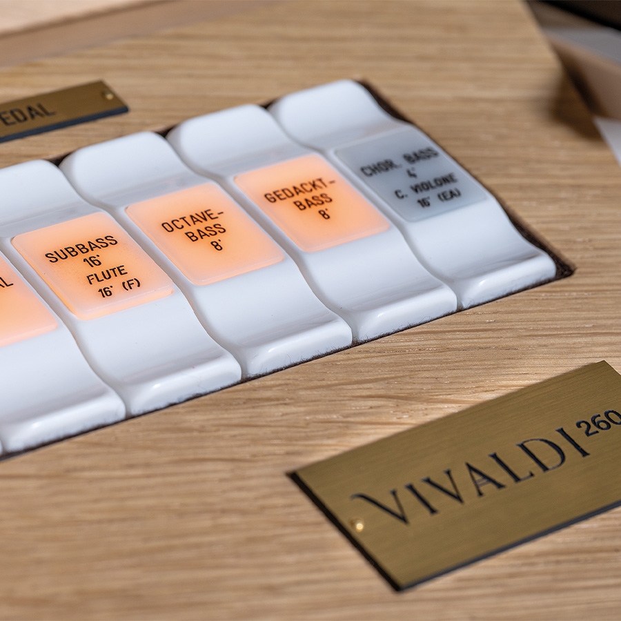 Vivaldi ist das Meisterstück von Johannus! Und diese Johannus Vivaldi 260 ist die neueste Generation in dieser prestigeträchtigen Serie. Die ultimative Verbindung von Technologie und Tradition bietet ein unvergleichliches Musikerlebnis. Alle Klänge stammen aus fortschrittlichen HDSS-Samples, die von echten Pfeifenorgeln in berühmten Kirchen aufgenommen wurden. Das macht Vivaldi zu einem soliden Instrument, das sofort spielbereit ist! Auf Knopfdruck ist die Orgel sofort eingeschaltet und man wähnt sich an historischen Instrumenten wie der Vater-Müller-Orgel in Amsterdam.