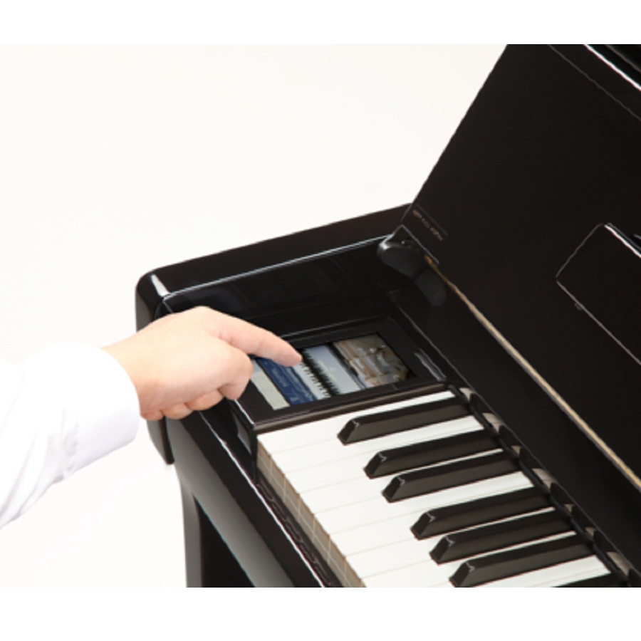 Die Bedienung des Silent-Systems kann als sehr fortschrittlich bezeichnet werden. Das Panel auf der linken Seite der Tastatur wurde in einen farbigen LCD-Touchscreen umgewandelt. Sie können ganz einfach Sounds auswählen oder Anpassungen am Sound vornehmen. Gut zu wissen ist, dass das System mit einem eingebauten Metronom und einer Aufnahmefunktion ausgestattet ist. Dieses Kawai Silent Klavier wird auch mit hochwertigen kostenlosen SH-9-Kopfhörern geliefert.