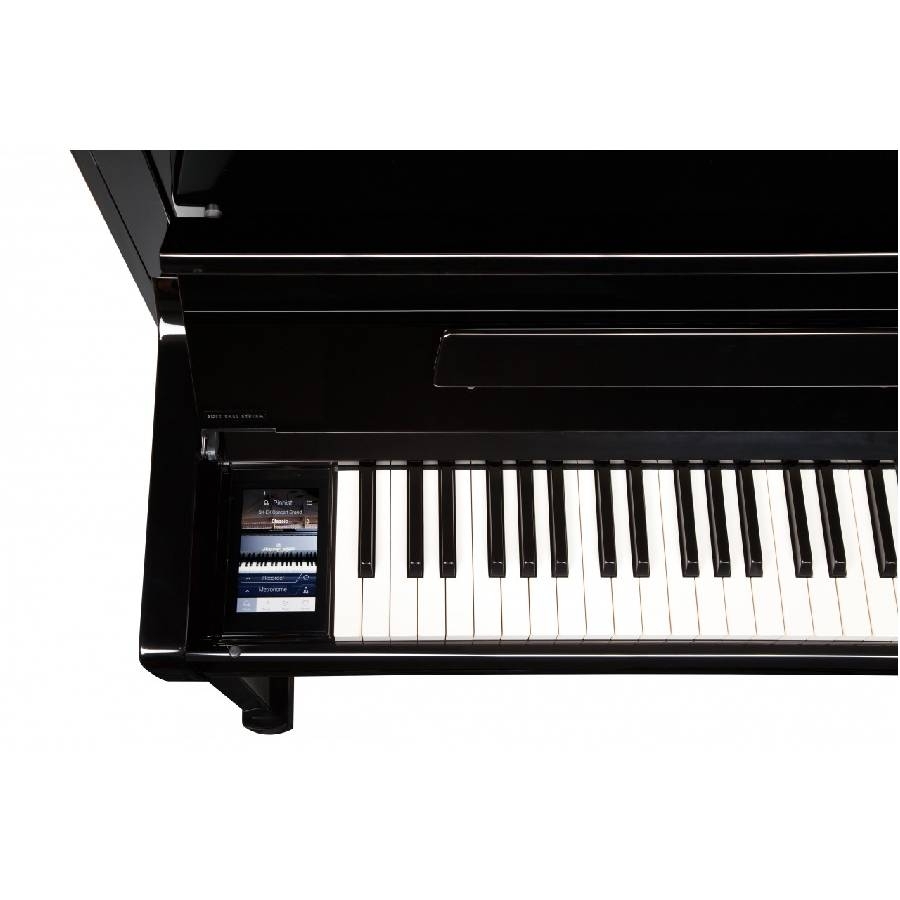 Links neben der Tastatur des Klaviers befindet sich ein großes Touchscreen-Display. Von diesem Panel aus können Sie den elektronischen Teil des Klaviers einfach bedienen. Einstellen des gewünschten Sounds, aber auch zum Beispiel das Einstellen eines Splits oder Duals, das Einstellen eines Metronoms, das Transponieren des Klaviers oder das Ändern der Stimmung. Im Panel finden Sie auch eine Aufnahmefunktion.