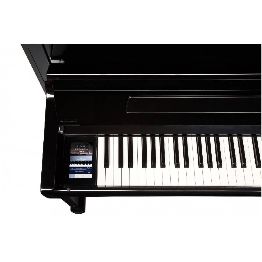 Links neben der Tastatur des Klaviers befindet sich ein großes Touchscreen-Display. Über dieses Panel können Sie den elektronischen Teil des Klaviers bequem bedienen, zum Beispiel den gewünschten Sound einstellen, aber auch einen Split oder einen Dual einstellen, ein Metronom einstellen, das Klavier transponieren oder die Stimmung ändern. Im Panel finden Sie auch eine Aufnahmefunktion.